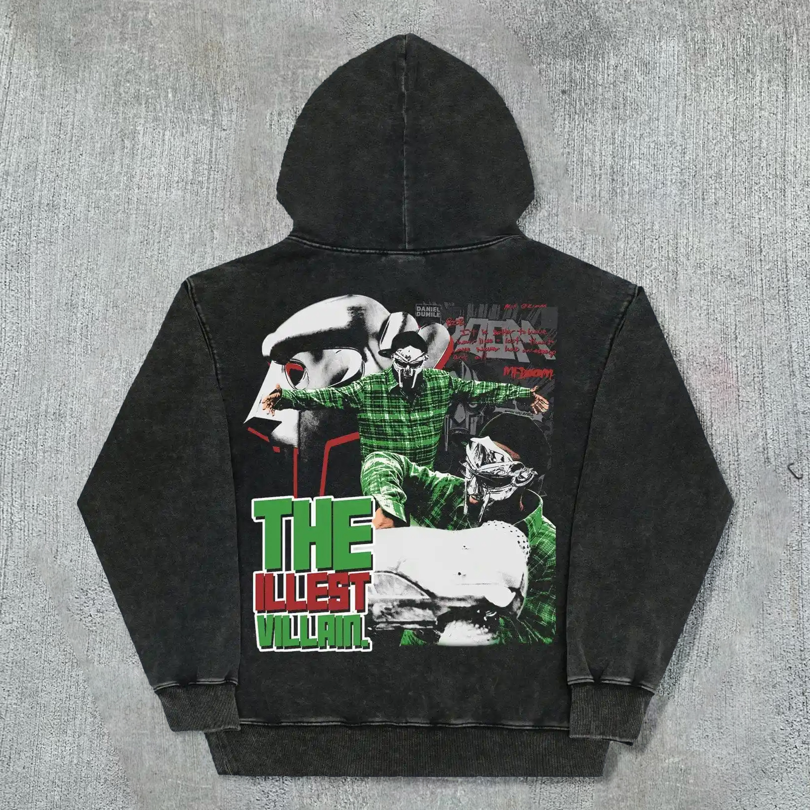 Casual Street Collage Washed Zip Hoodie