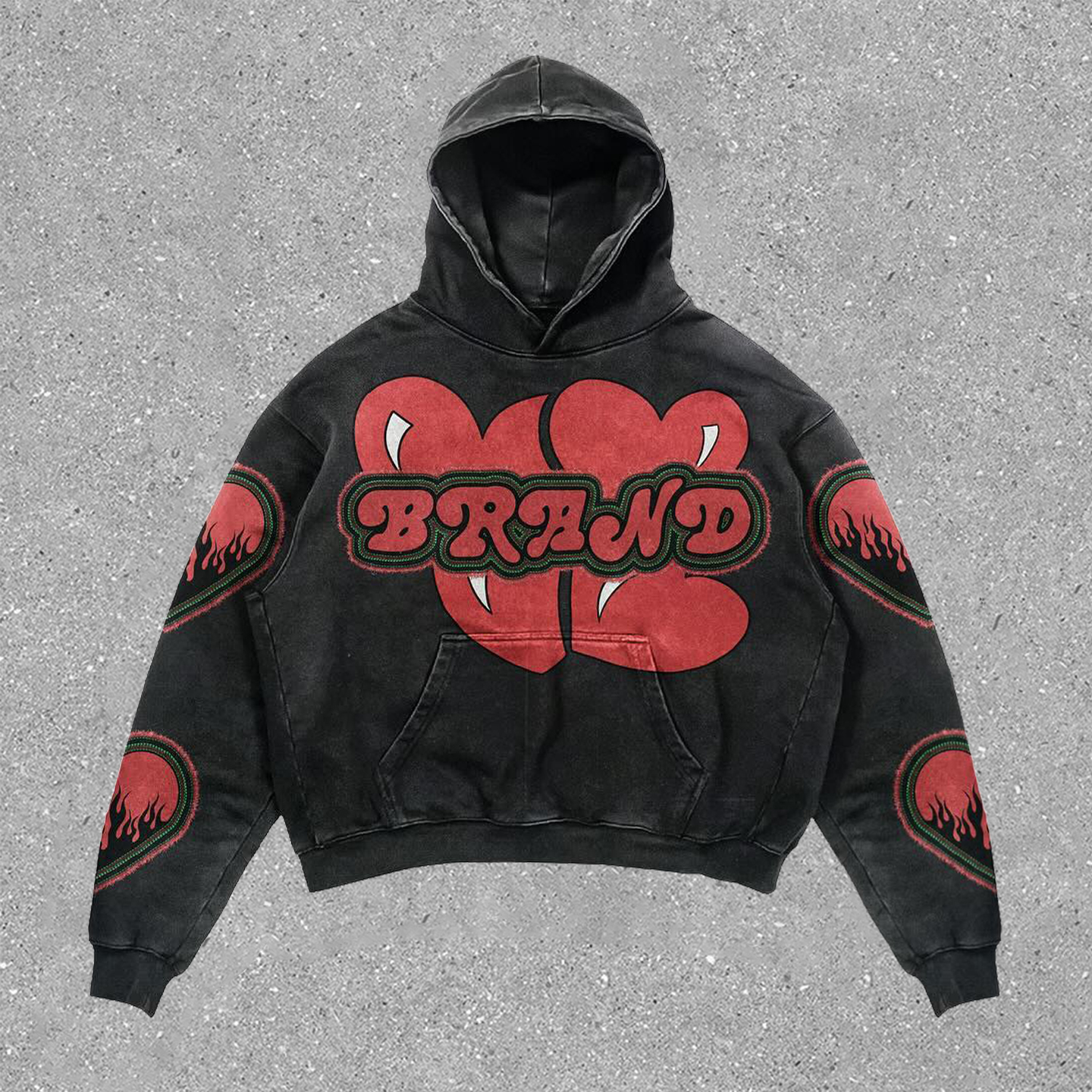 Tooth Flame Print Long Sleeve Hoodies