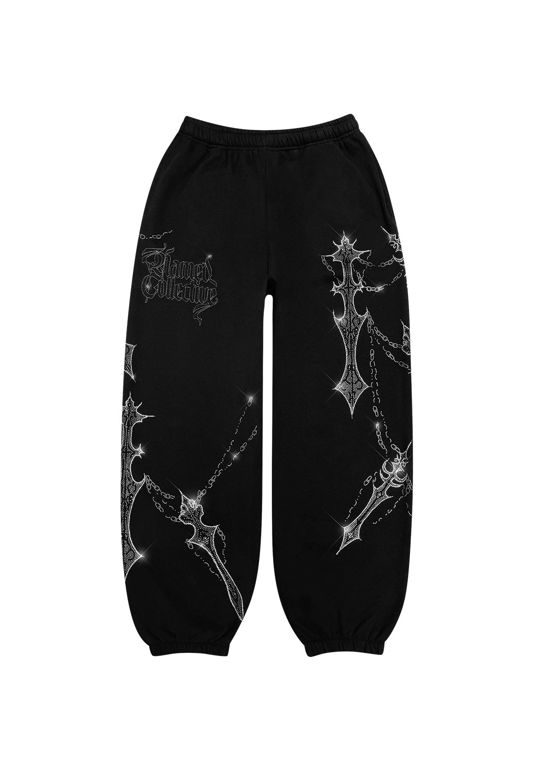 DAGGERS RHINESTONE SWEATPANTS BLACK