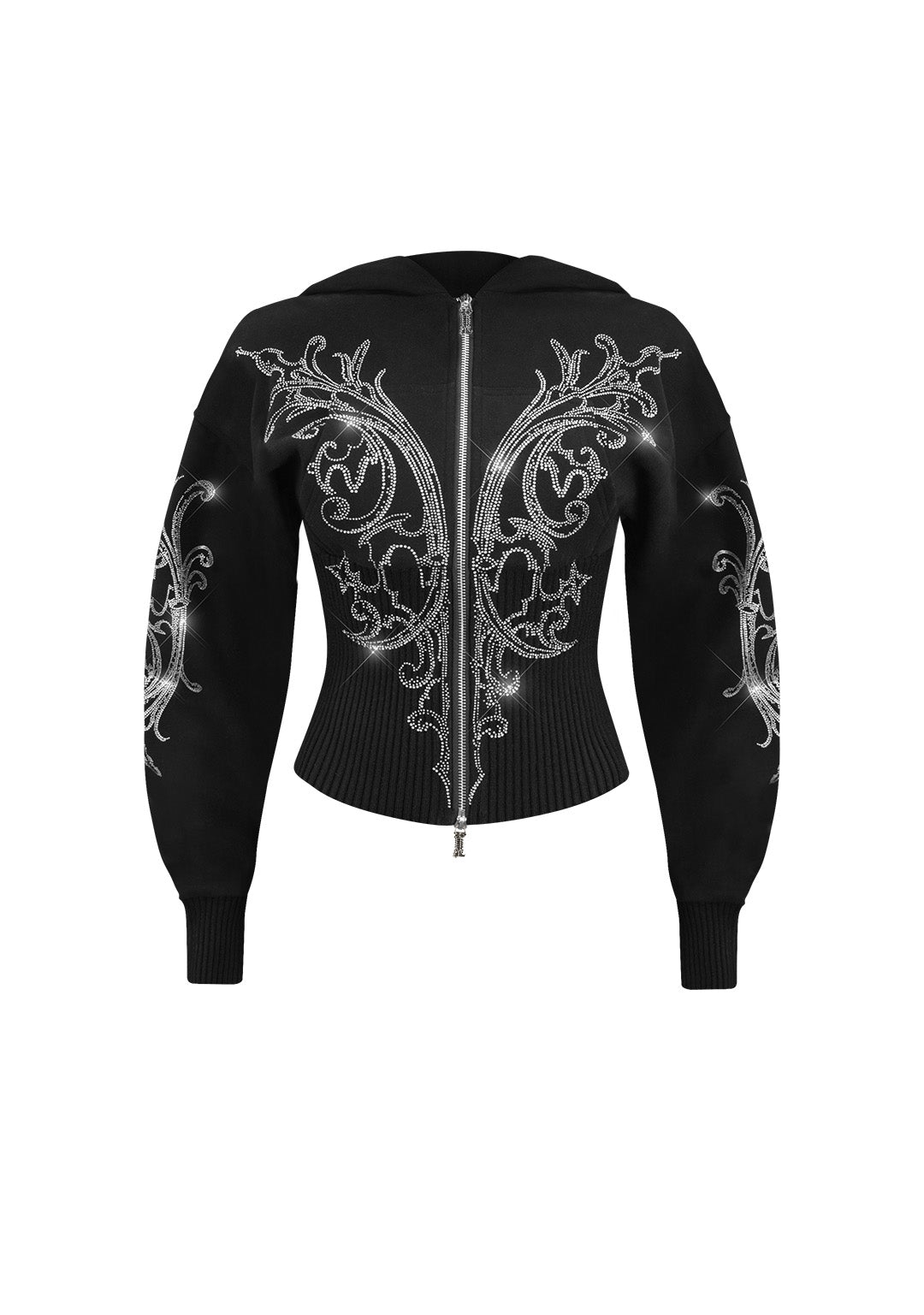 NOCTURNAL RHINESTONE FITTED WAIST ZIP HOODIE BLACK