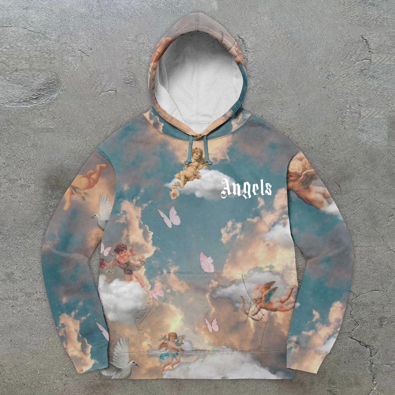 Angel Vintage Print Trendy Street Hoodie