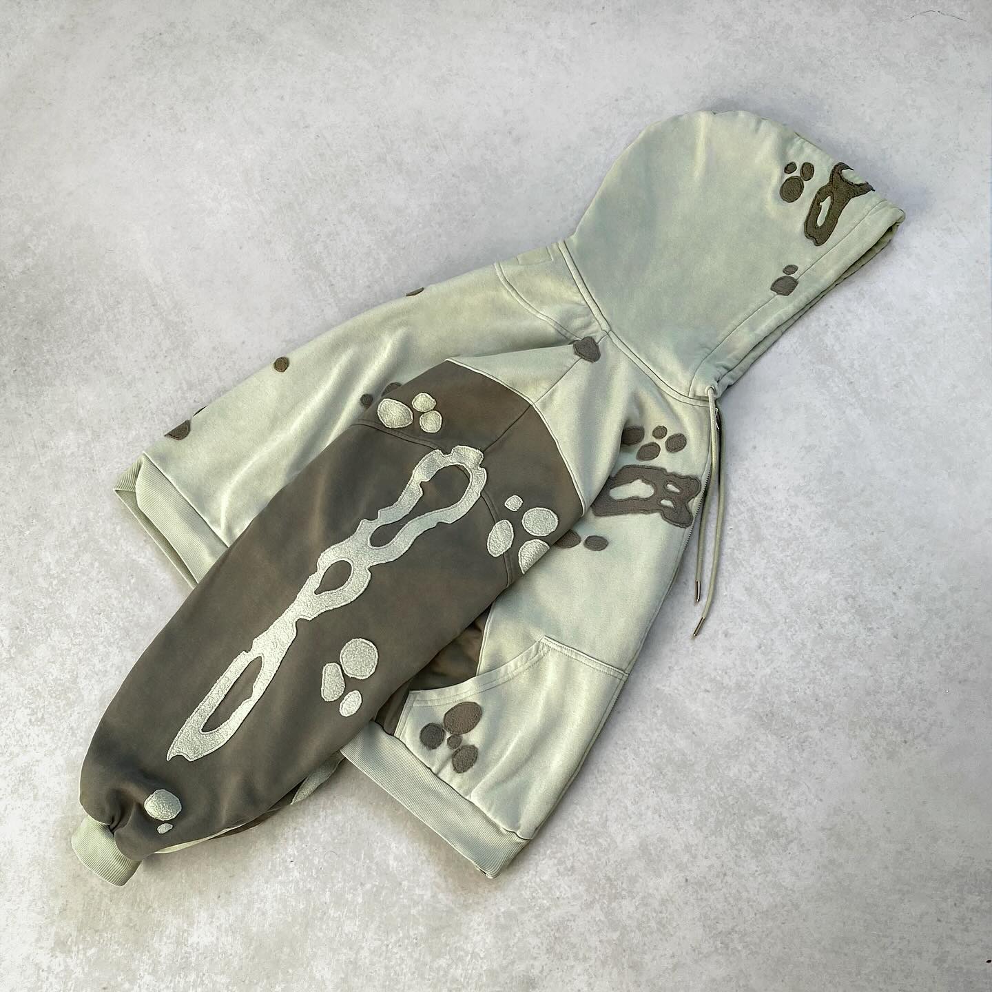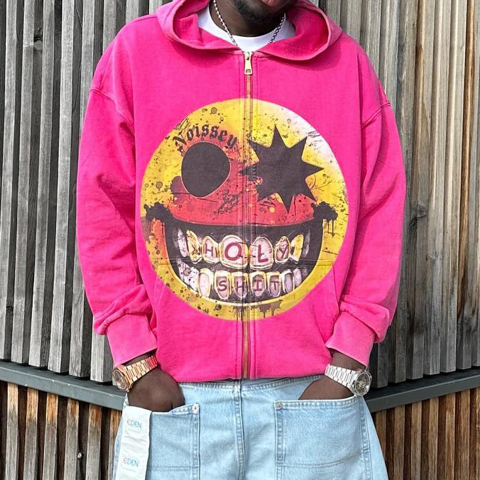 Vintage distressed print zip-up hoodie