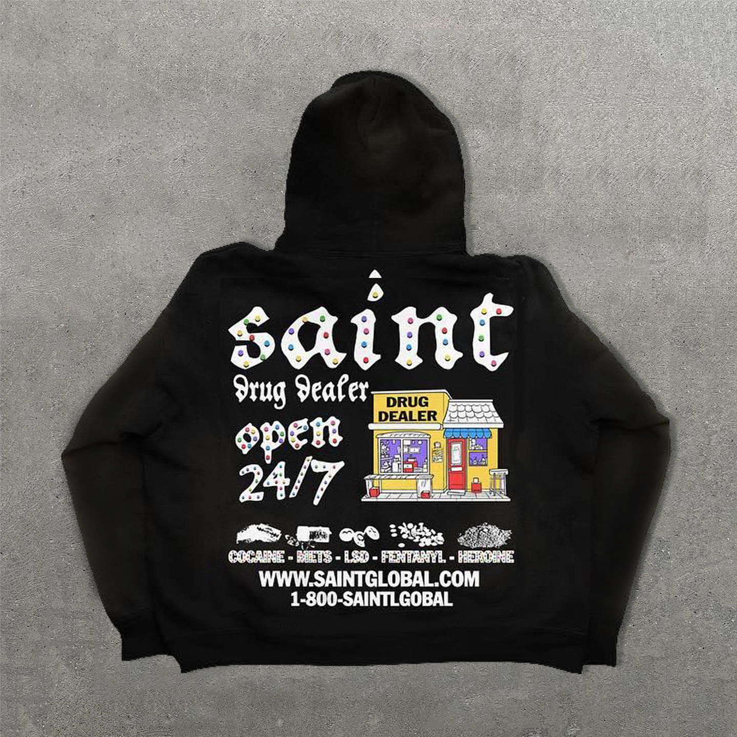 Saint Drug Dealer Print Long Sleeve Hoodies
