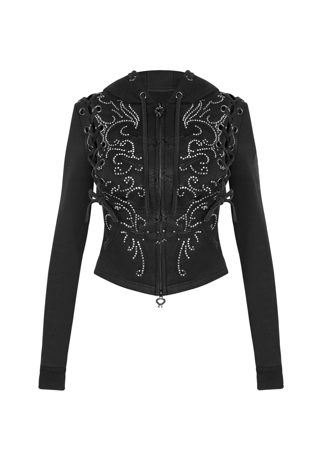 CONFESSIONS RHINESTONE CROP ZIP HOODIE BLACK