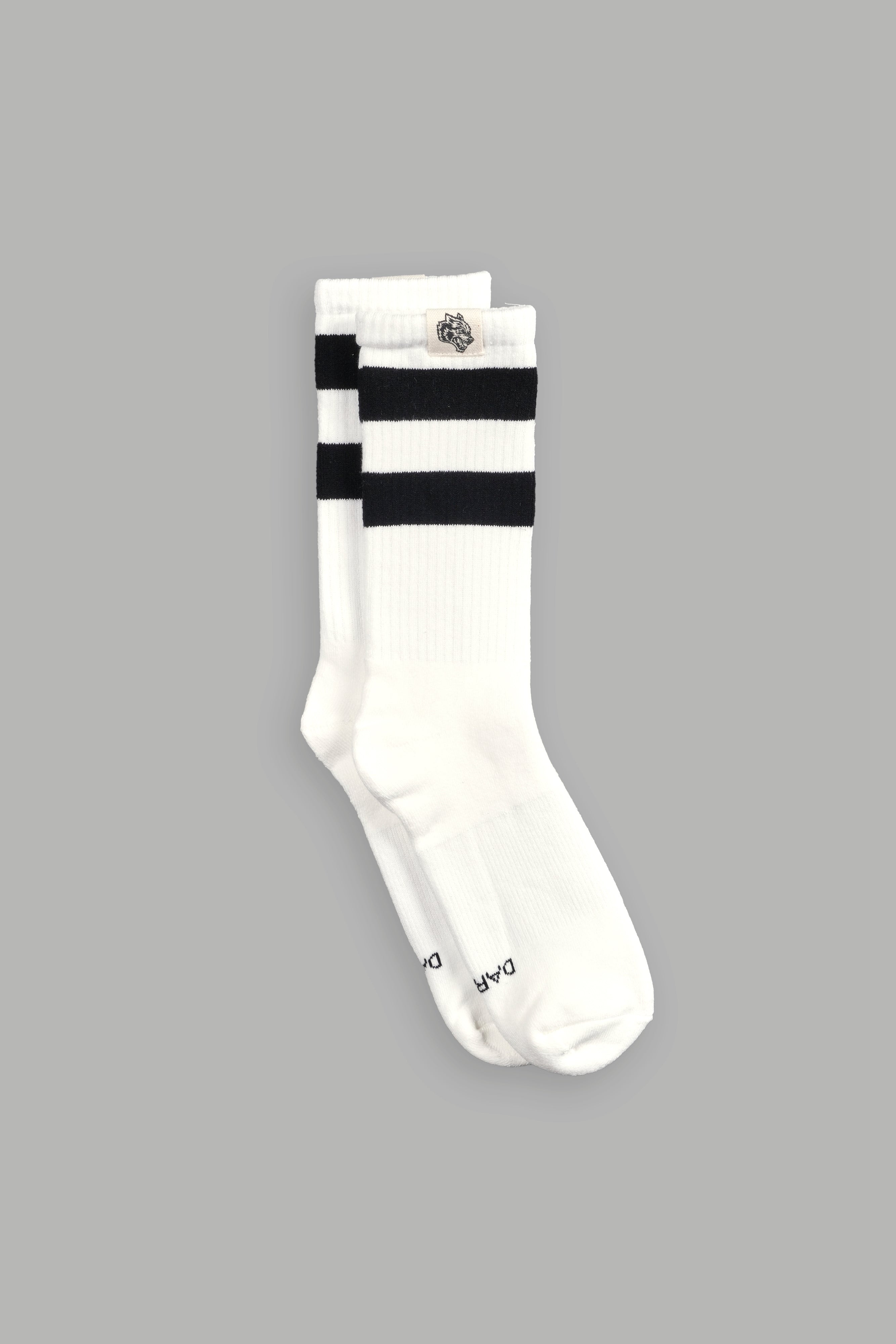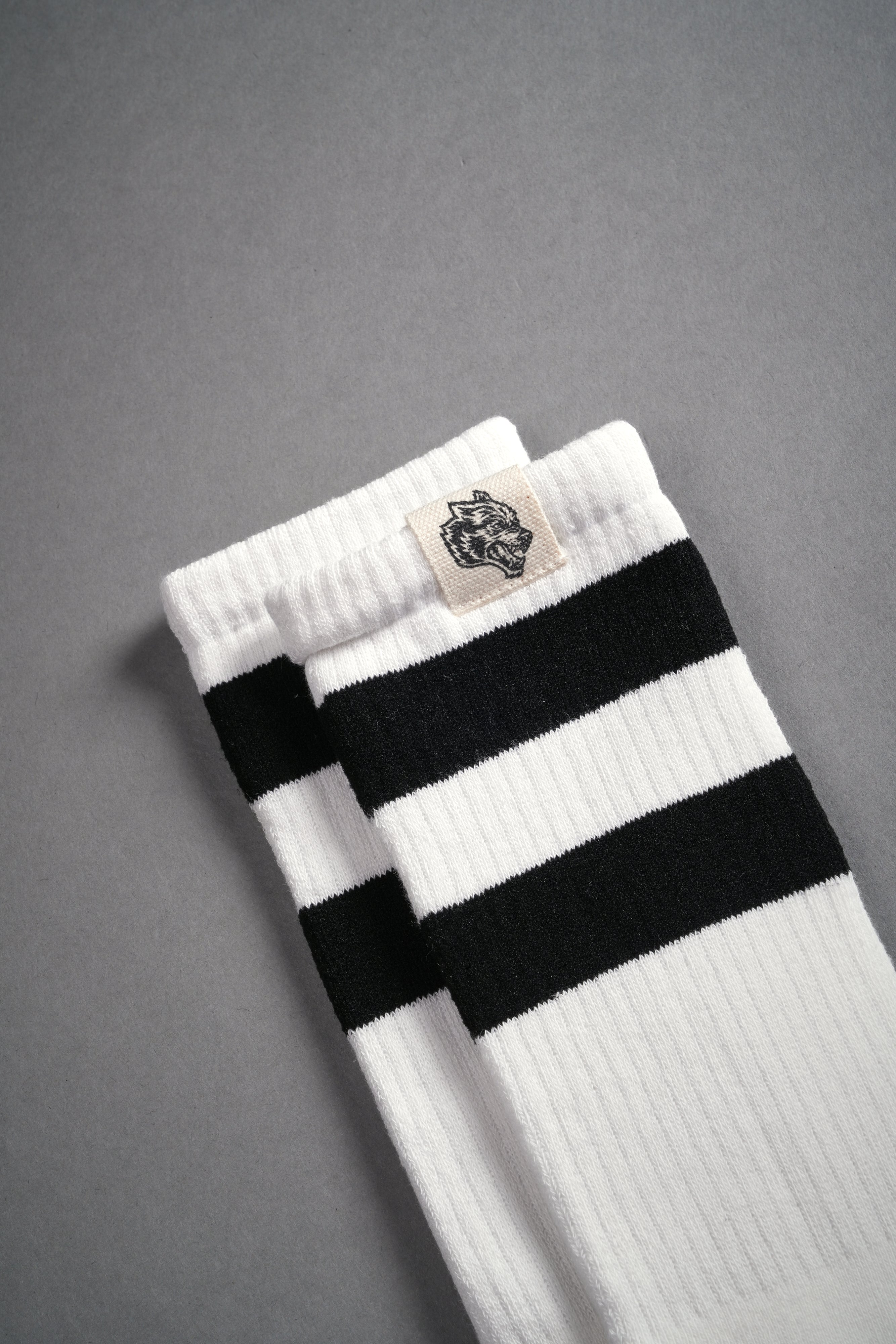 2 Stripe Wolf Patch Classic Socks in Cream/Black