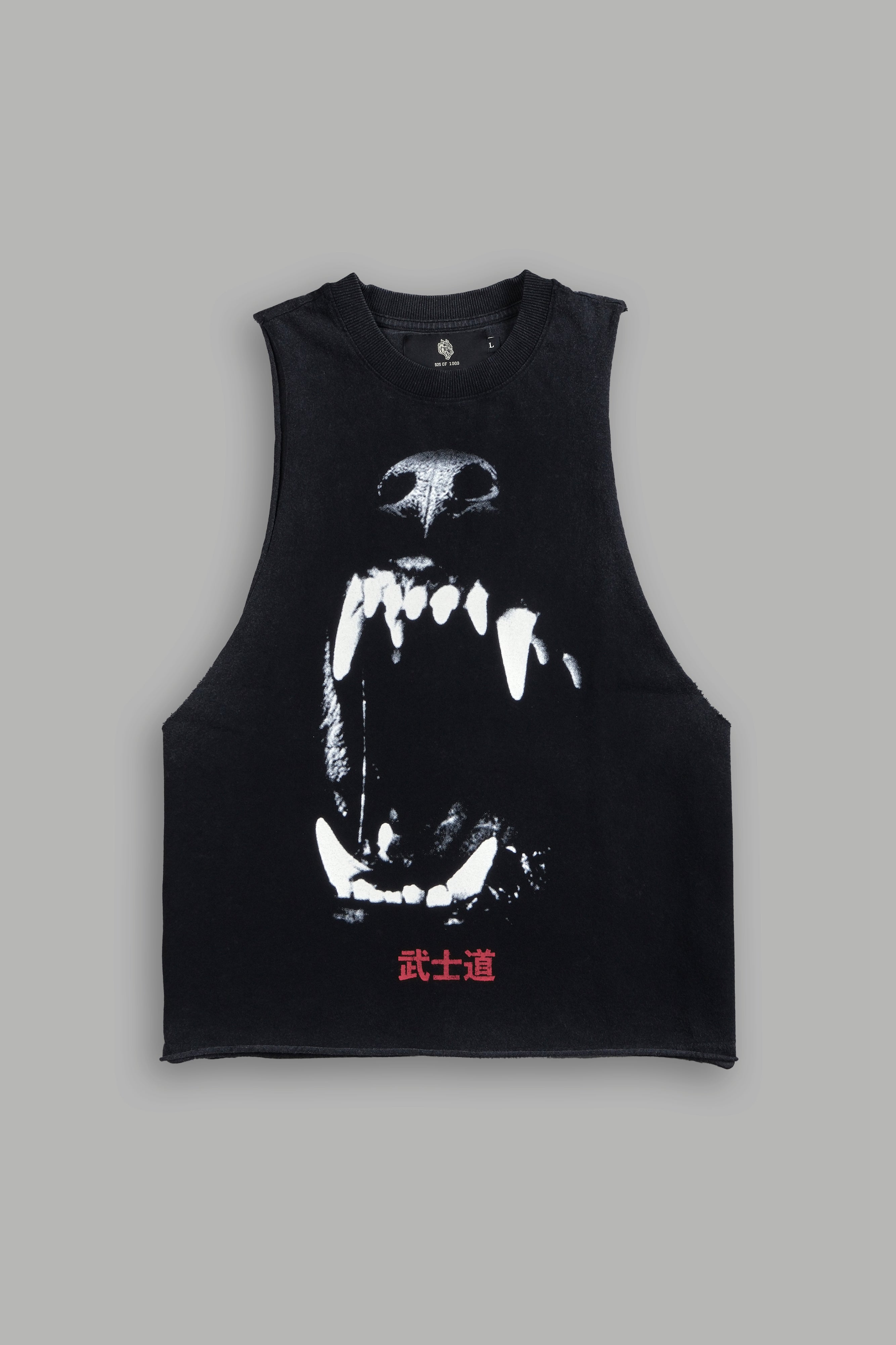 Blood Thirsty Kanji Grunge Raw Cropped "Tommy" Muscle Tee in Black