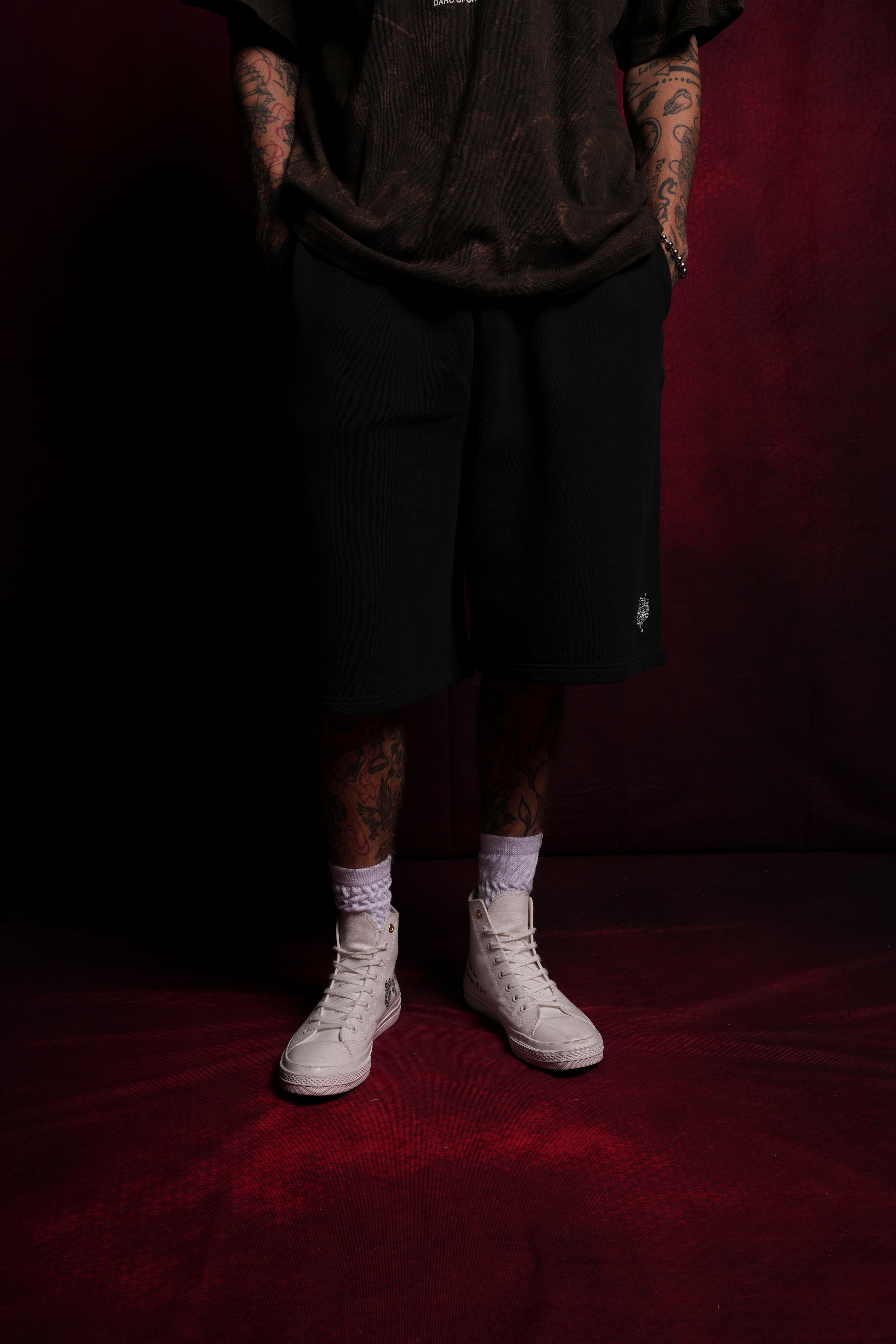 Dual Oversized Osiris Sweat Shorts in Darc Purple Sun Fade