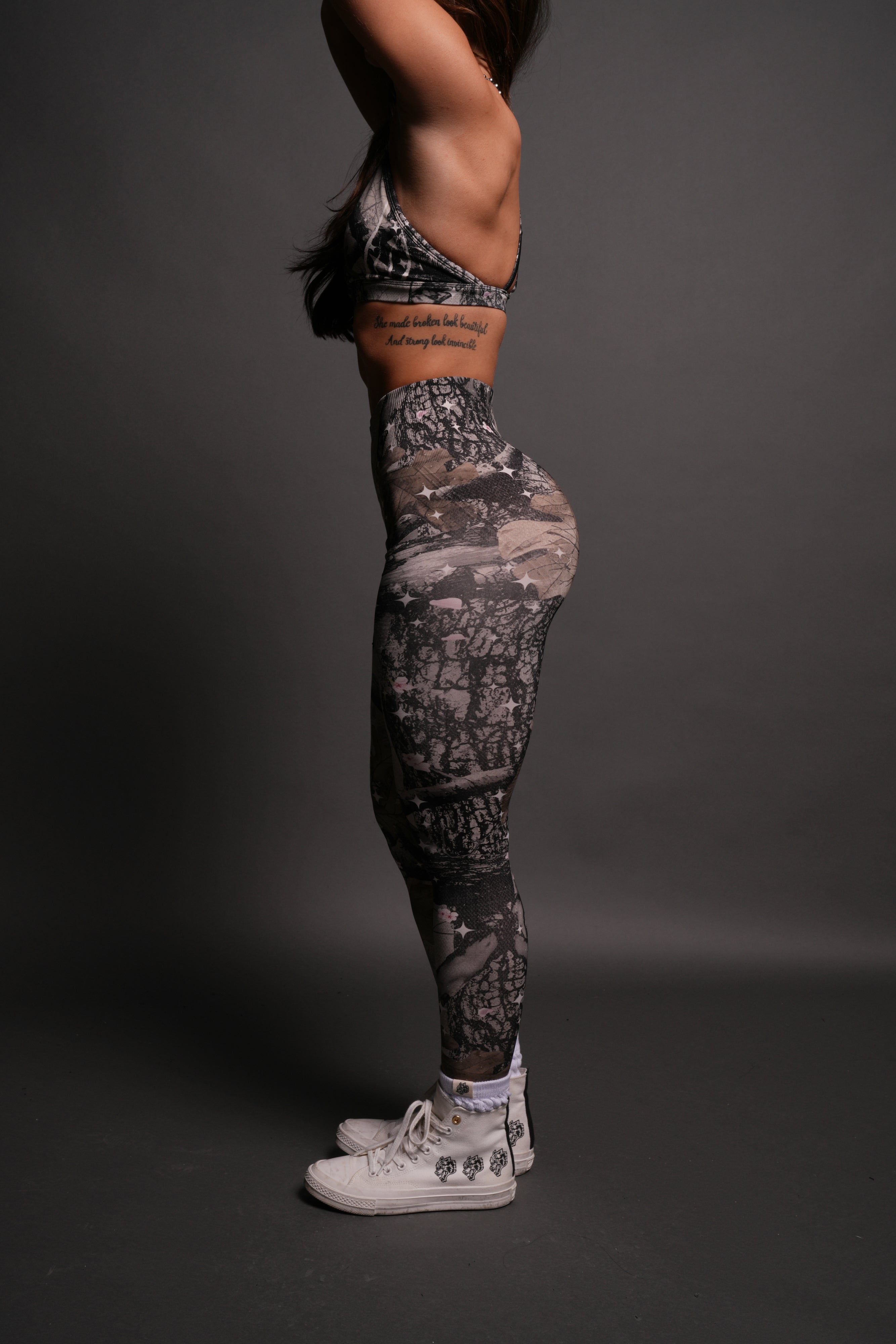 Big Wolf "Everson" Huxley Scrunch Leggings in Starry Blossom Woodland Camo