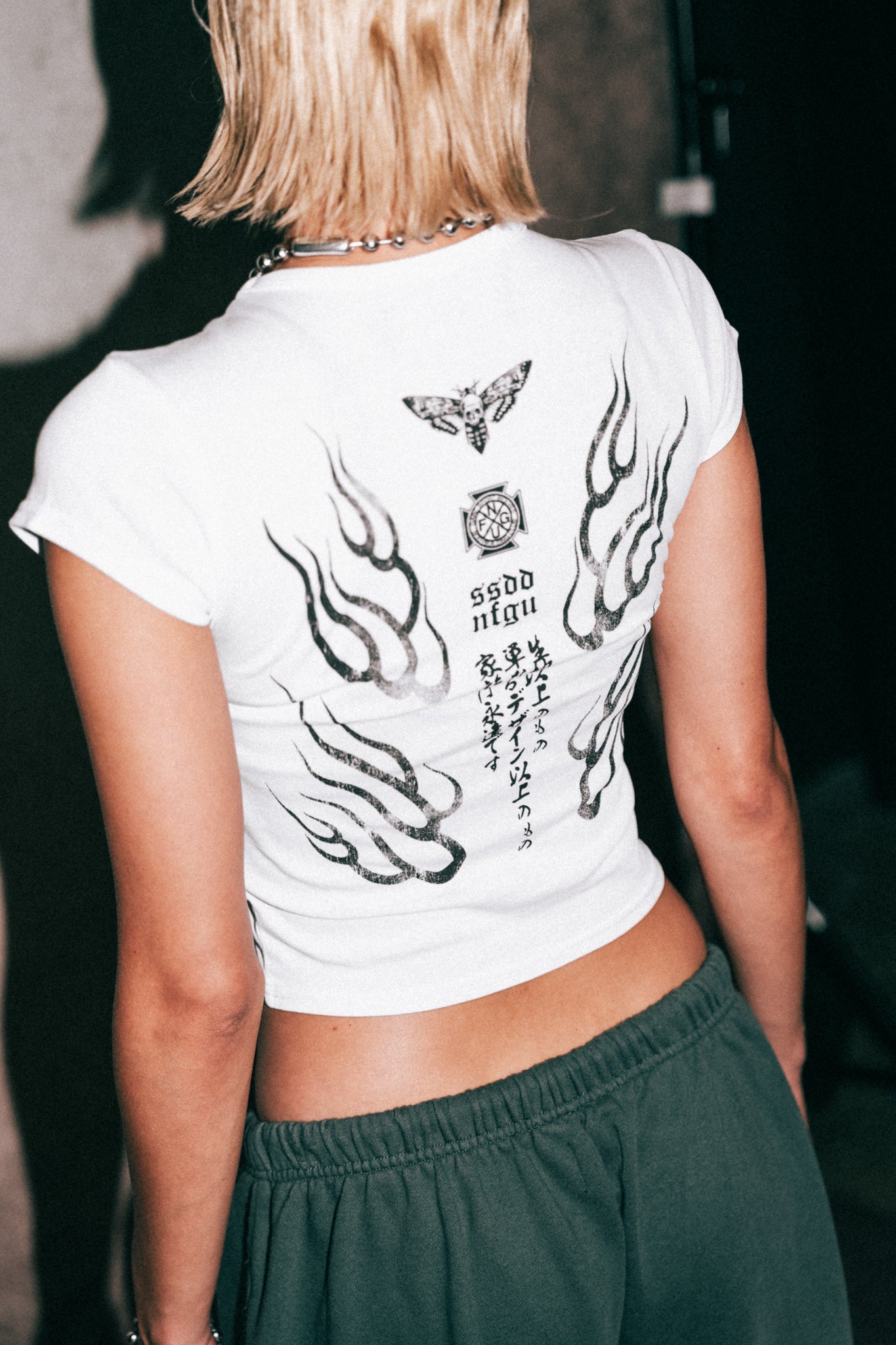 Moth Flames "Baby" Tee in White