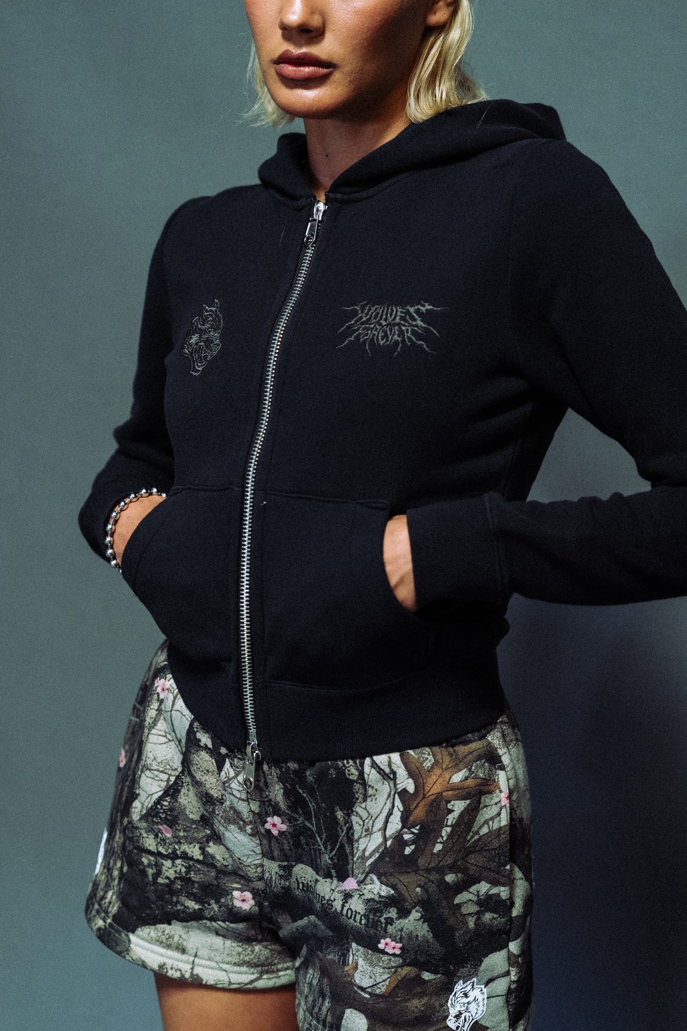 Moth Kanji "Iris" Zip Up Hoodie in Cherry Blossom Woodland Camo