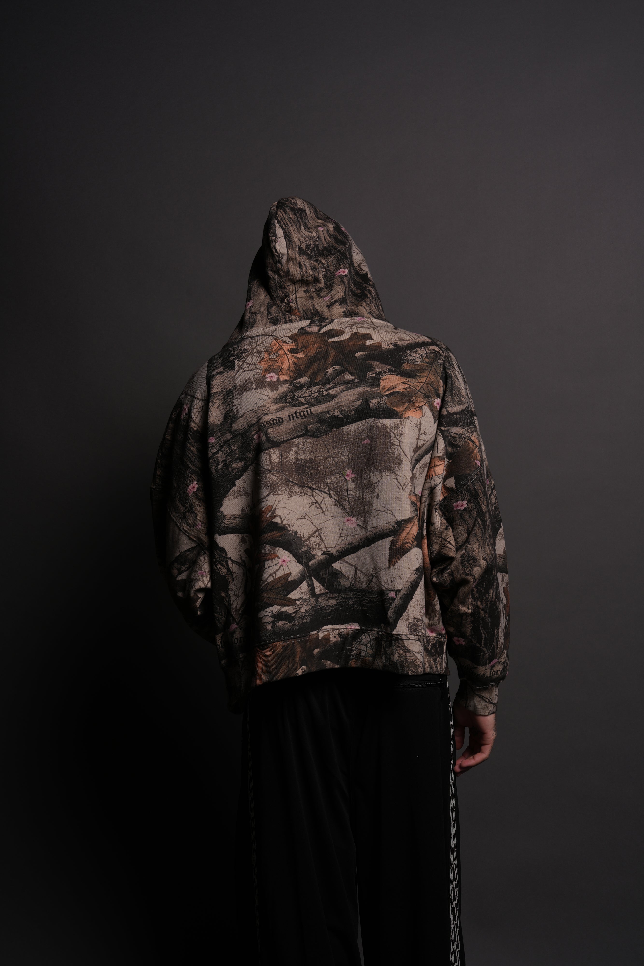 Loyalty Studded Grunge "Gage Box Cut" Hoodie in Cherry Blossom Woodland Camo