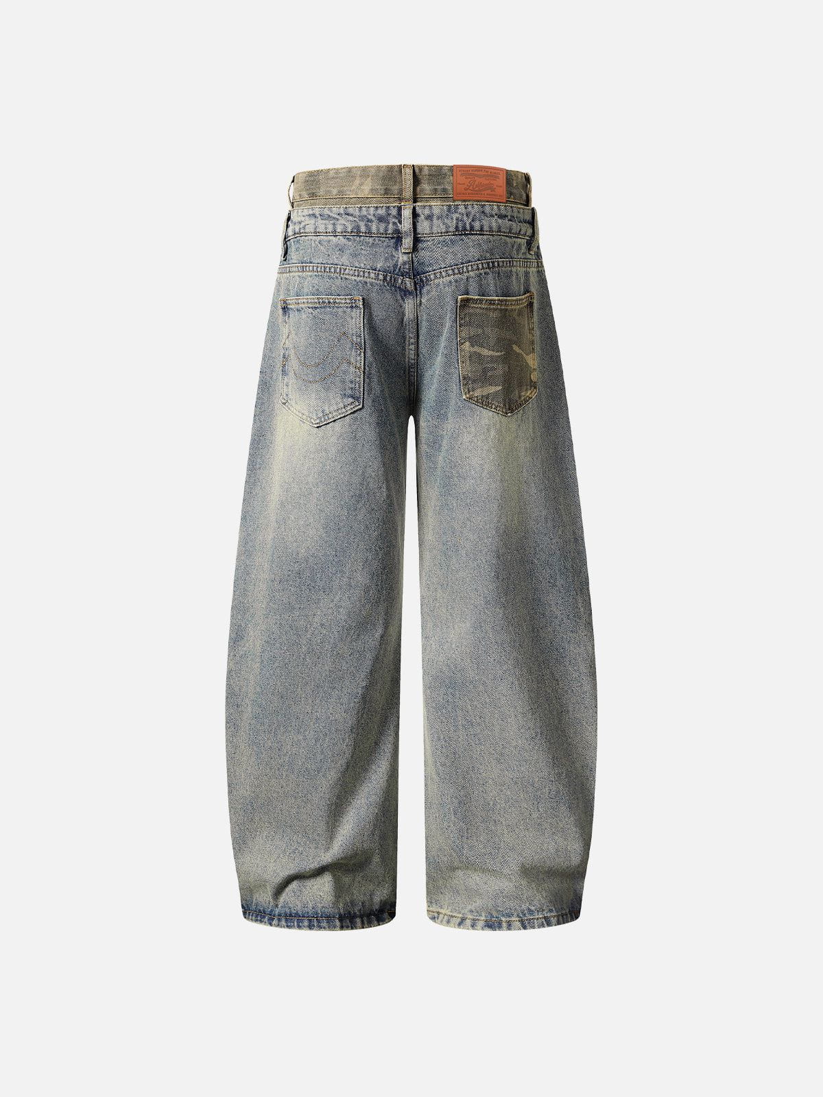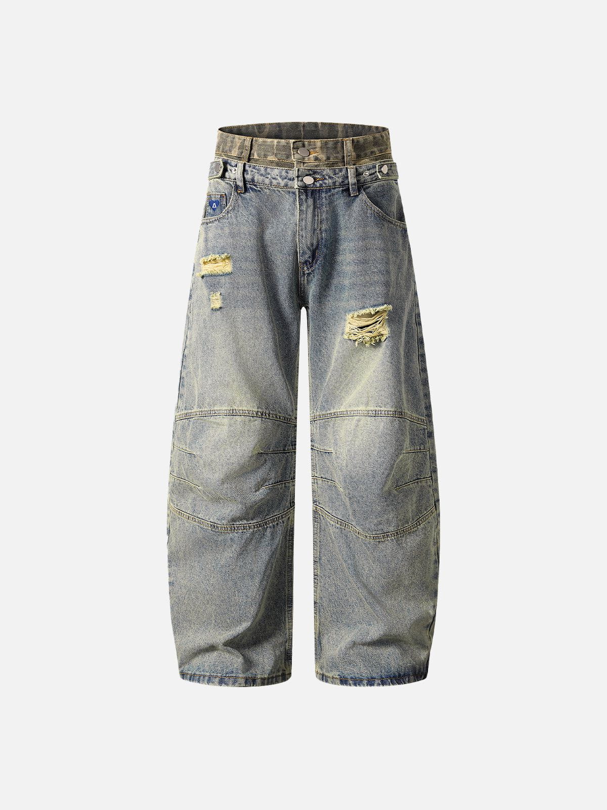 Double Waist Wrinkle Baggy Barrel Jeans