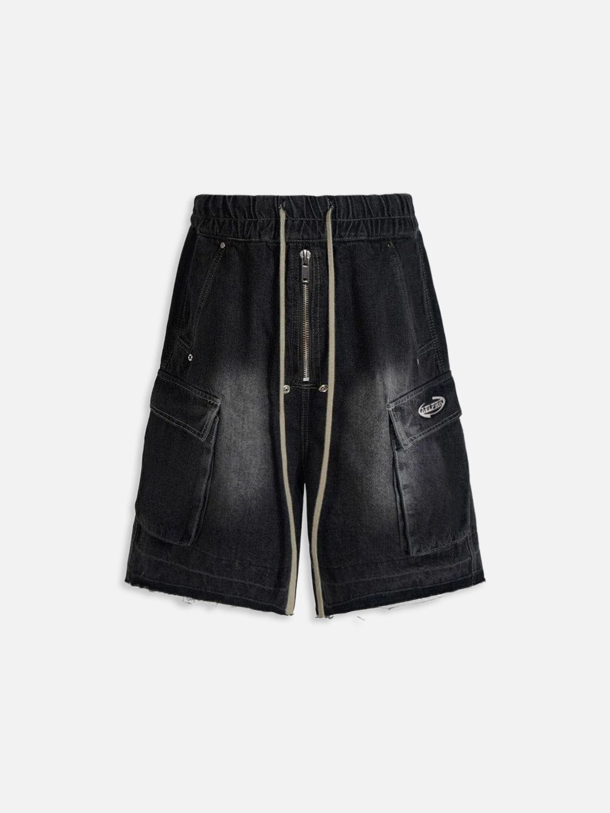 Drawstring Decorative Zipper Jorts