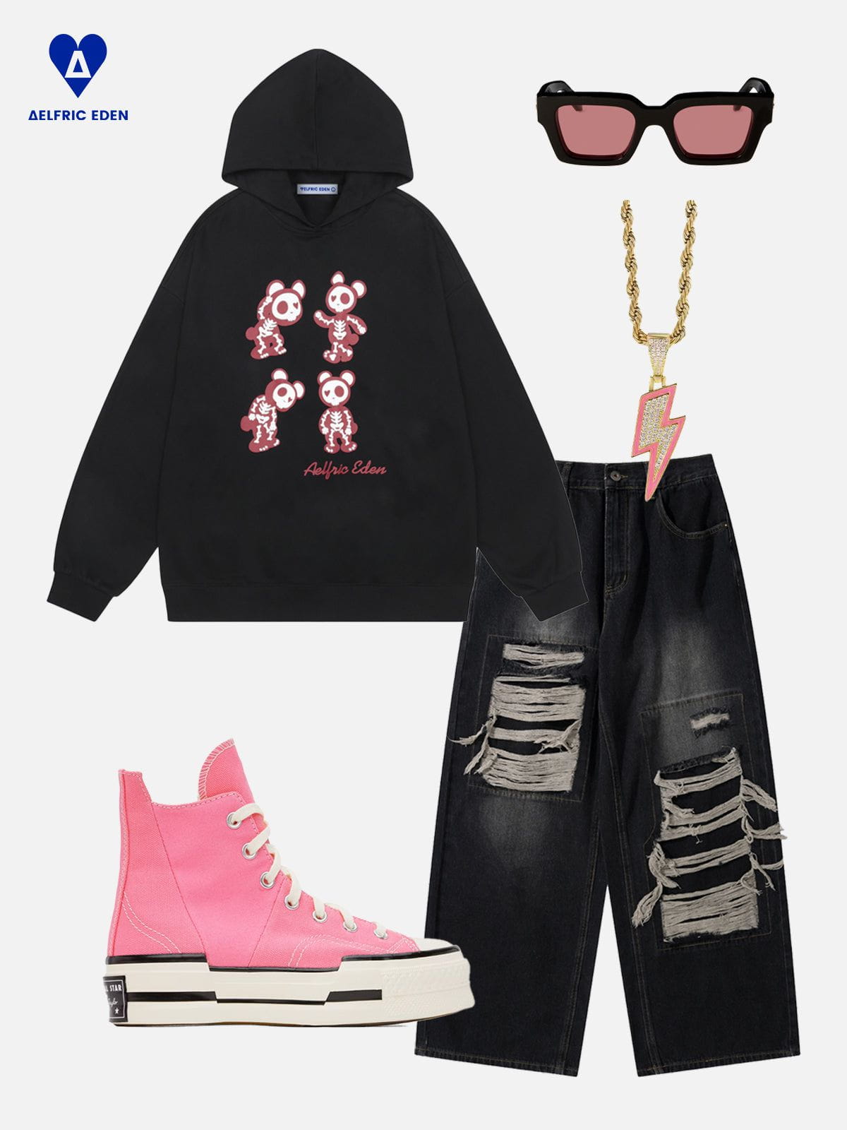 Distressed Embroidery Zip Up Hoodie
