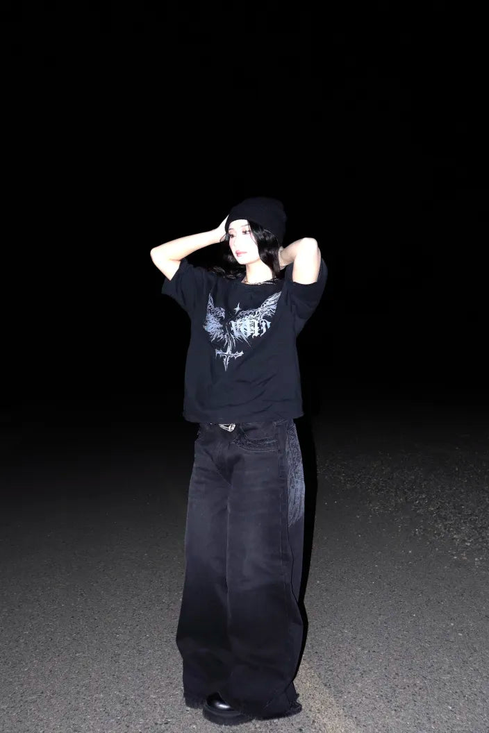 Y2K Fashion American Baggy Jeans Oversized Pattern Printed High Waist Wide-leg Pants Harajuku Women Casual Slacks Streetwear