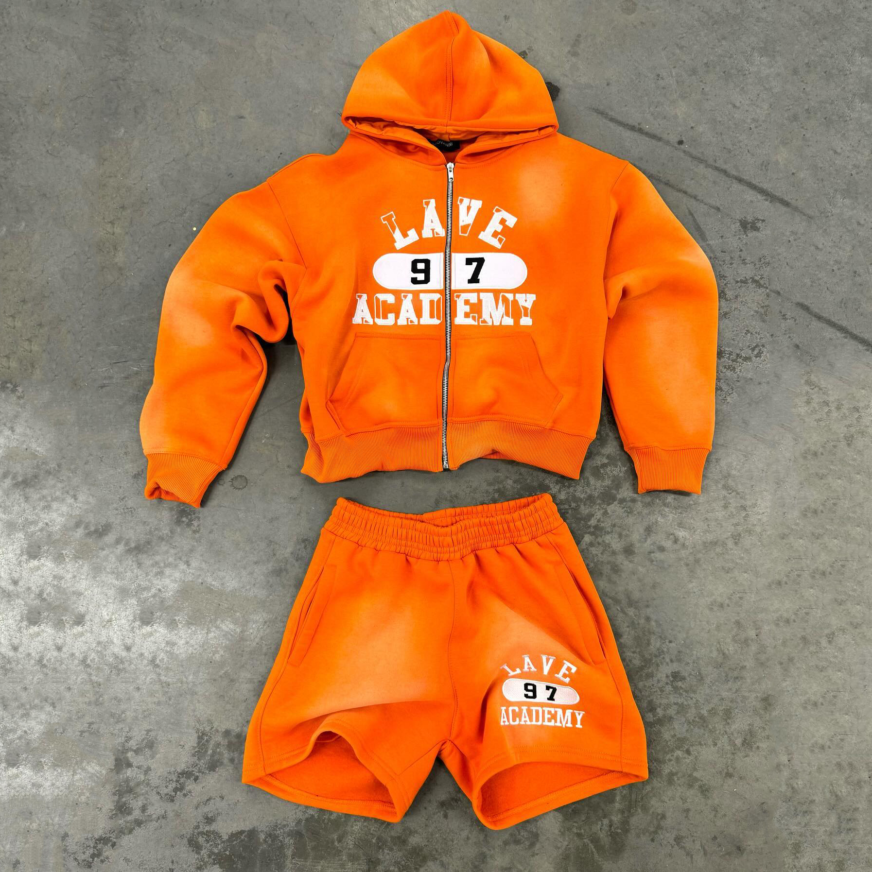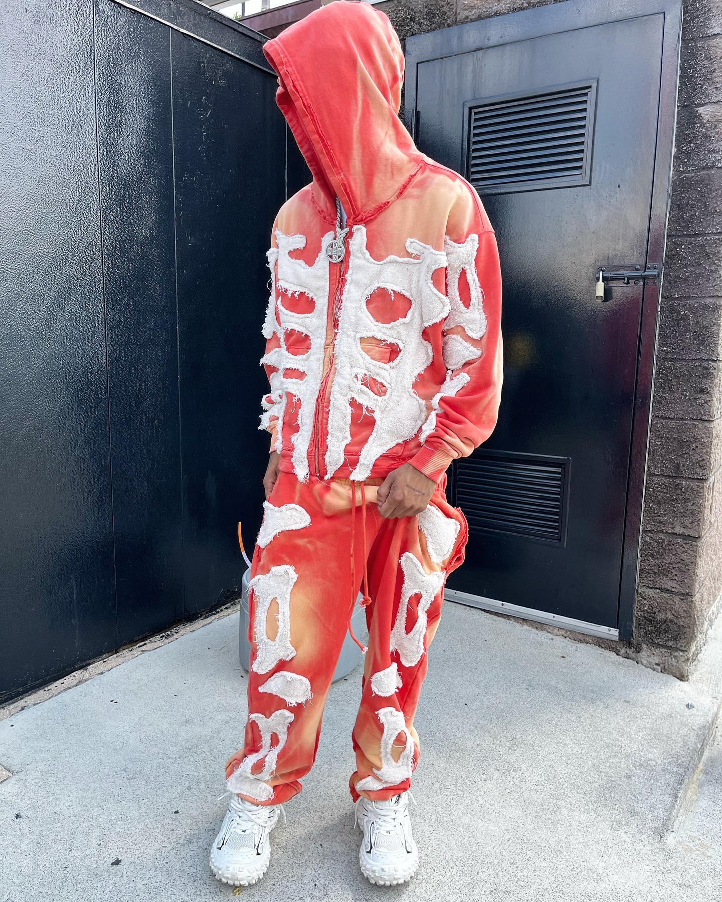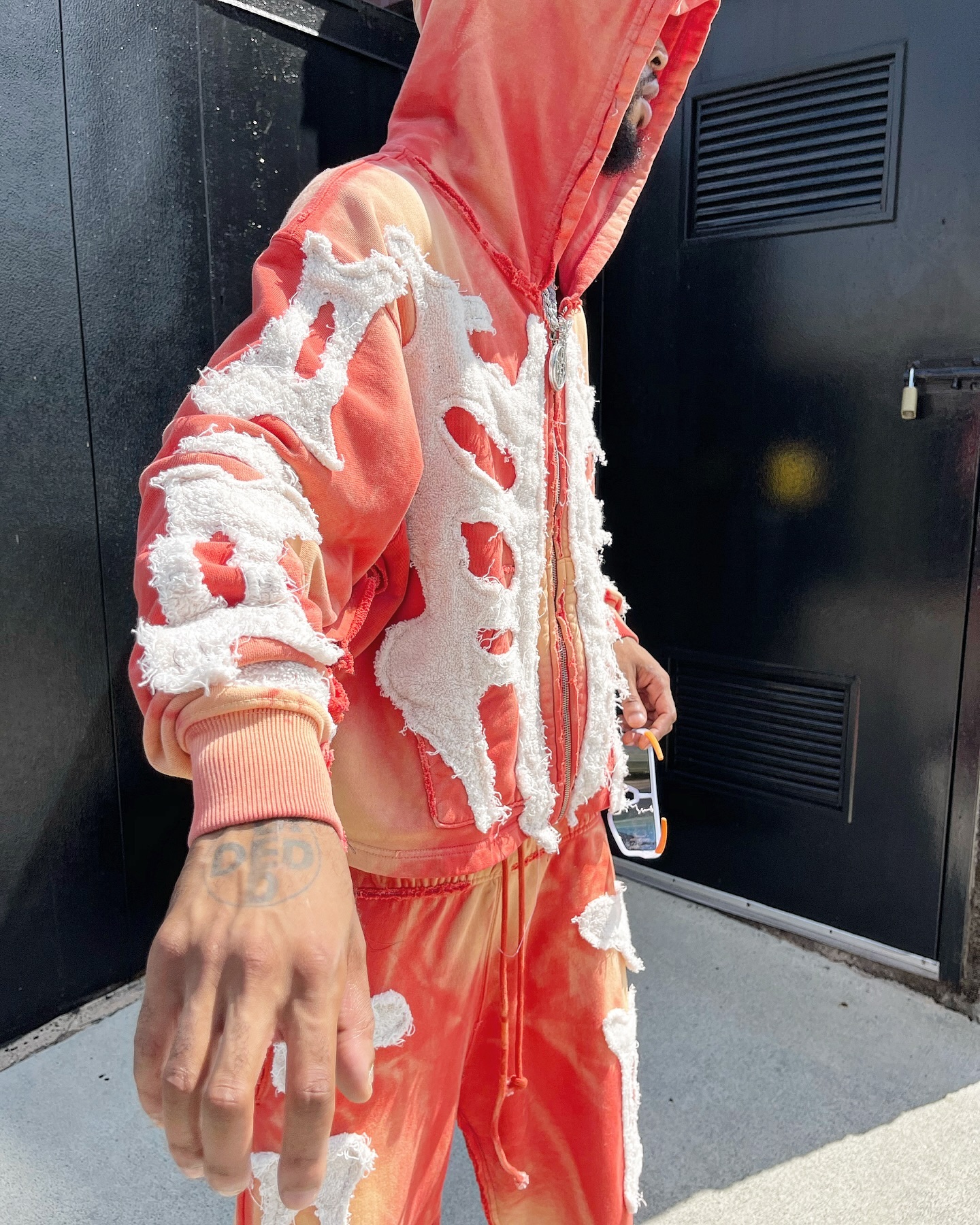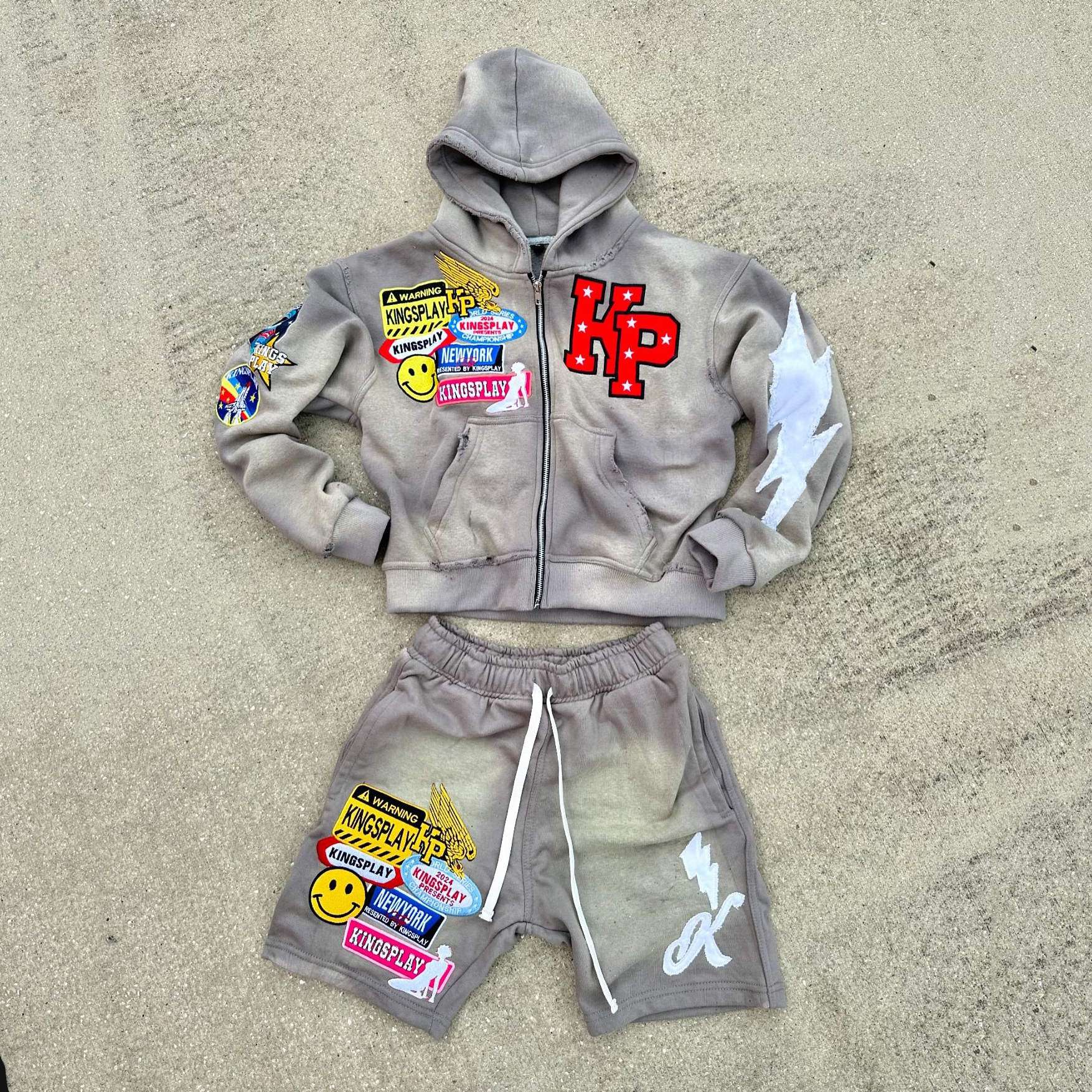 Fashionable patched street style sweatsuit