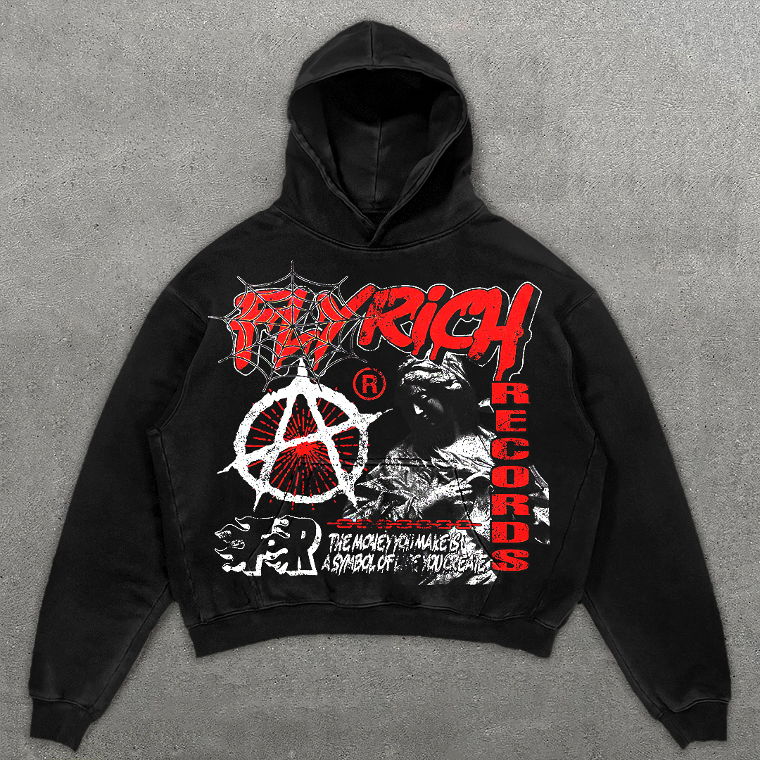 Mummy Fly Get Rich Vintage 2019 Graphic Casual Street Washed Hoodie