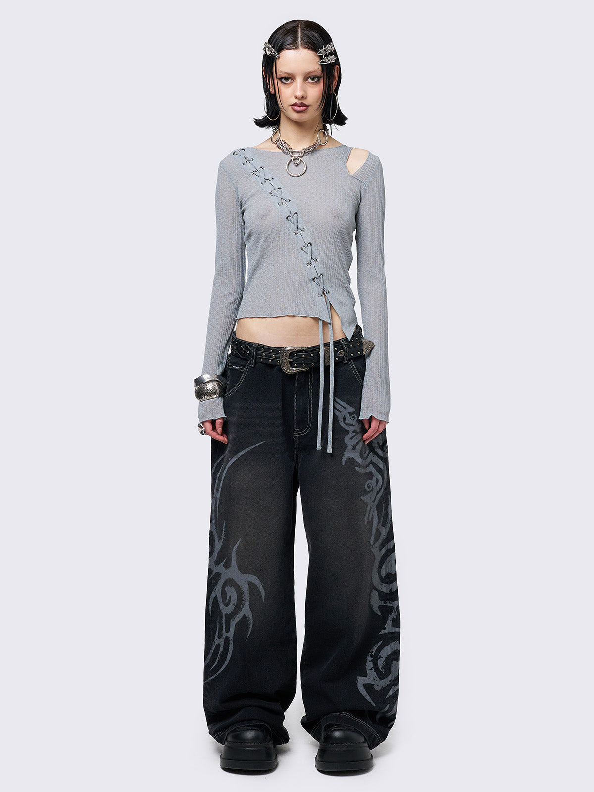 Aryana Grey Cut-Out Top