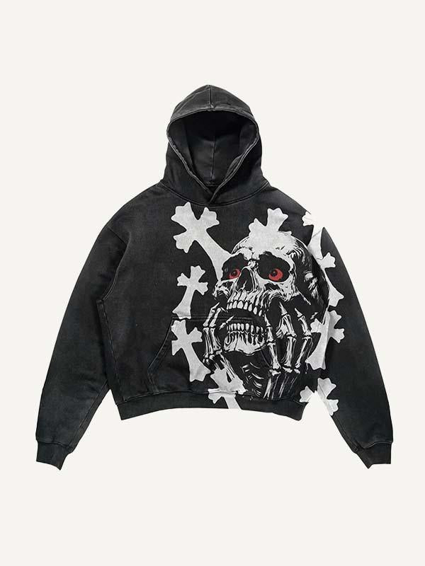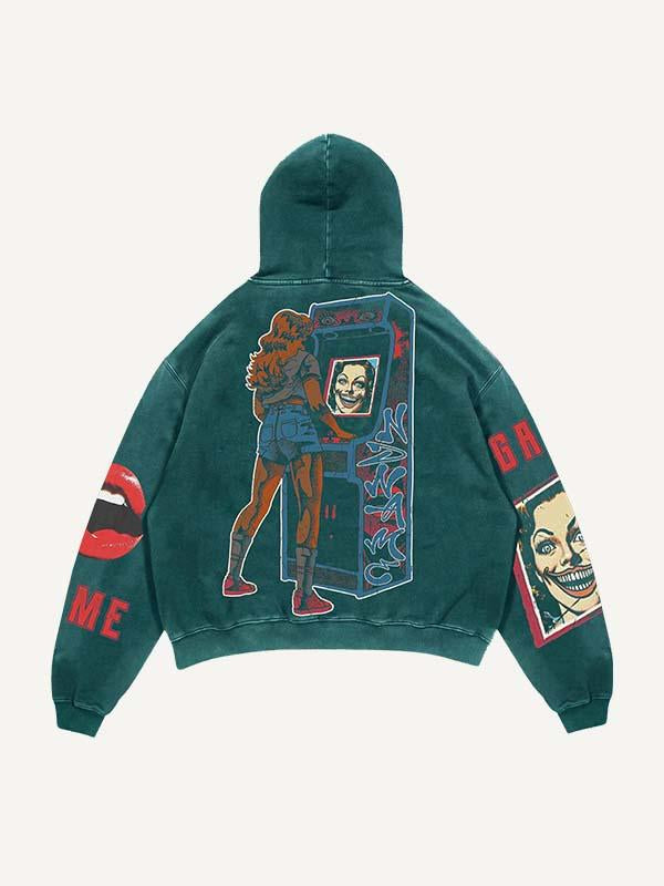Demon Sacrifice Figure Print Slant Pockets Hoodie