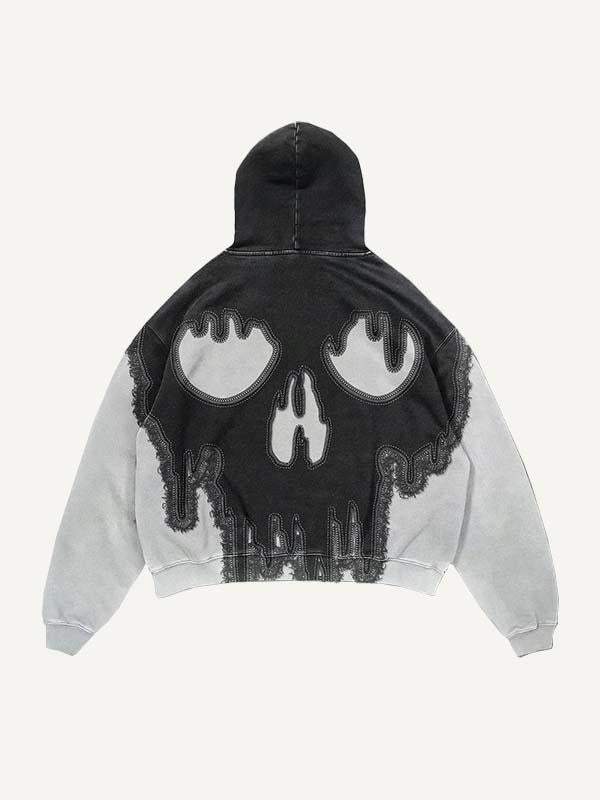 Colorblock Skeleton Faux Decal Print Slant Pockets Hoodie
