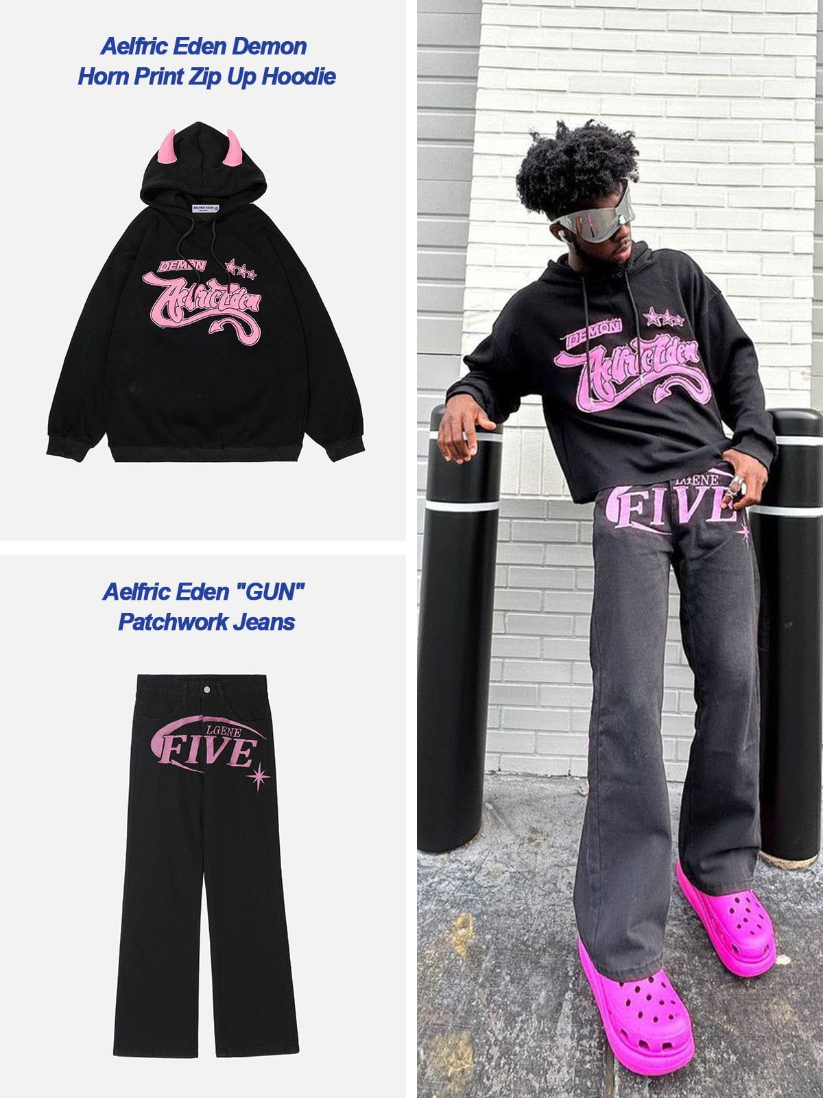 Demon Horn Print Zip Up Hoodie