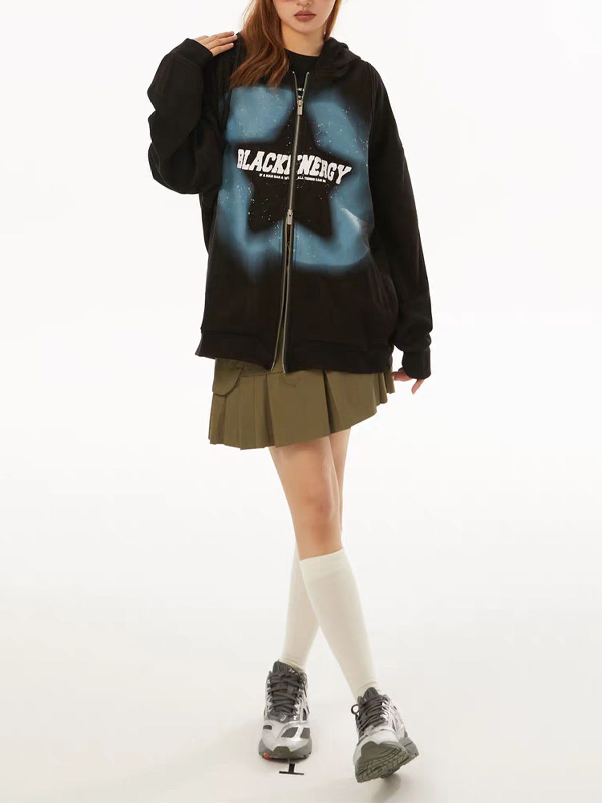 Star Letter Foam Print ZIP UP Hoodie