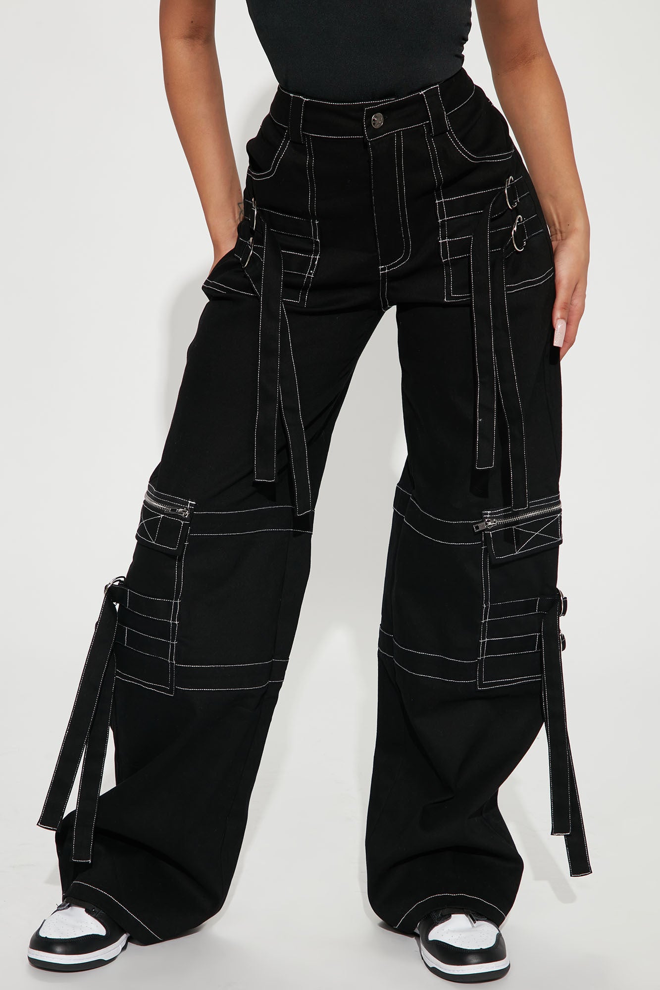 Cruise Control Contrast Stitch Cargo Pants - Black