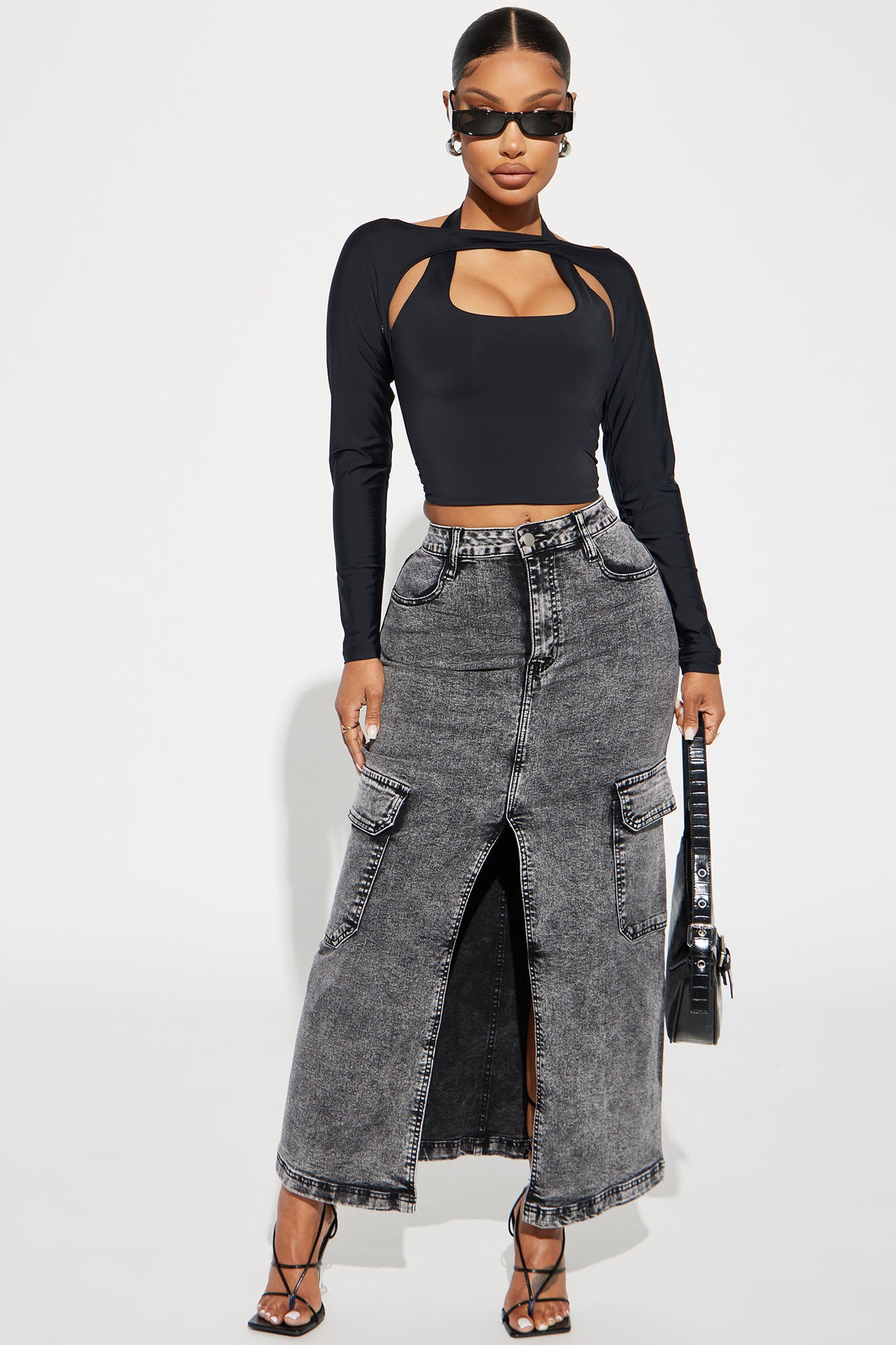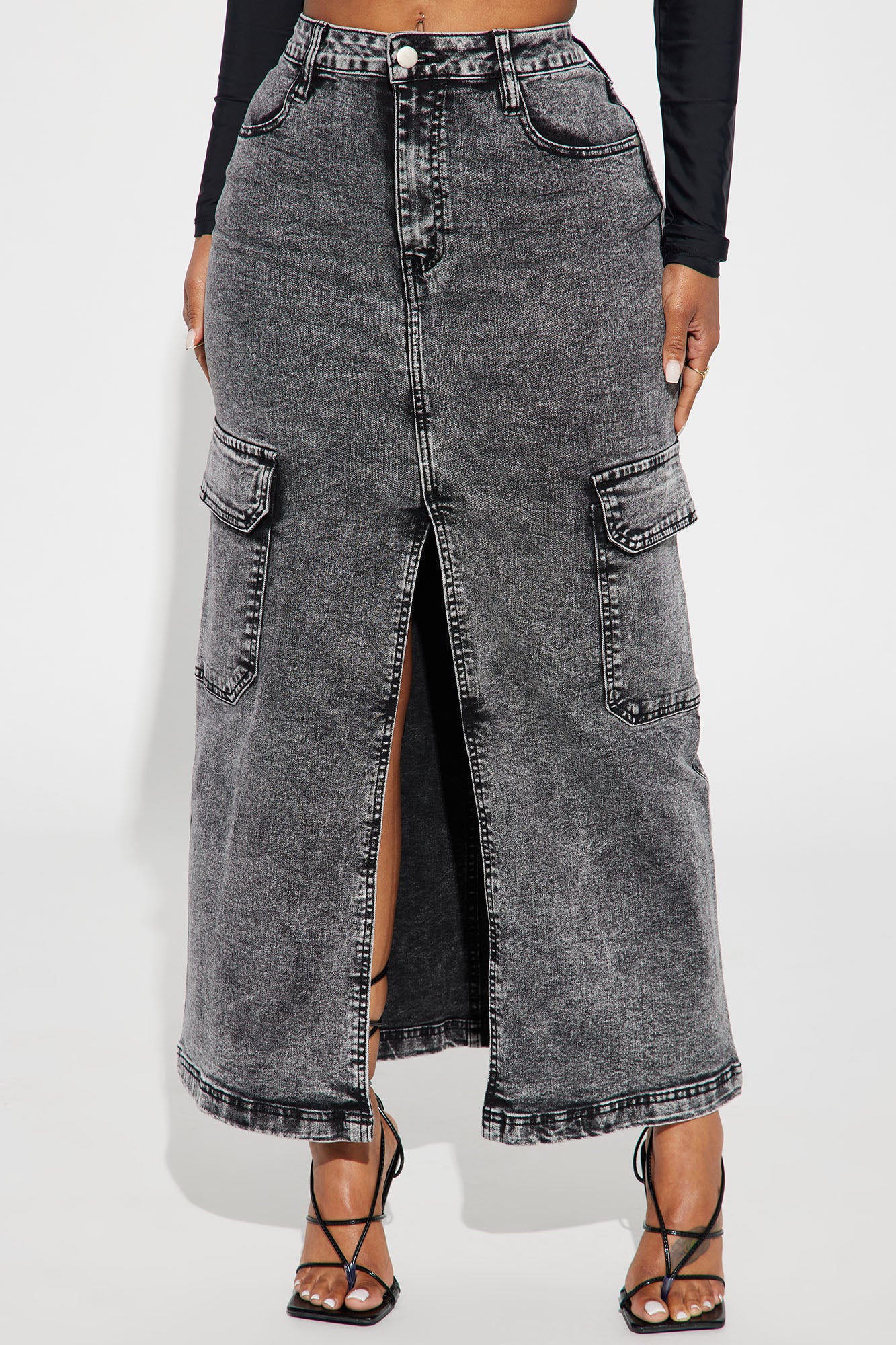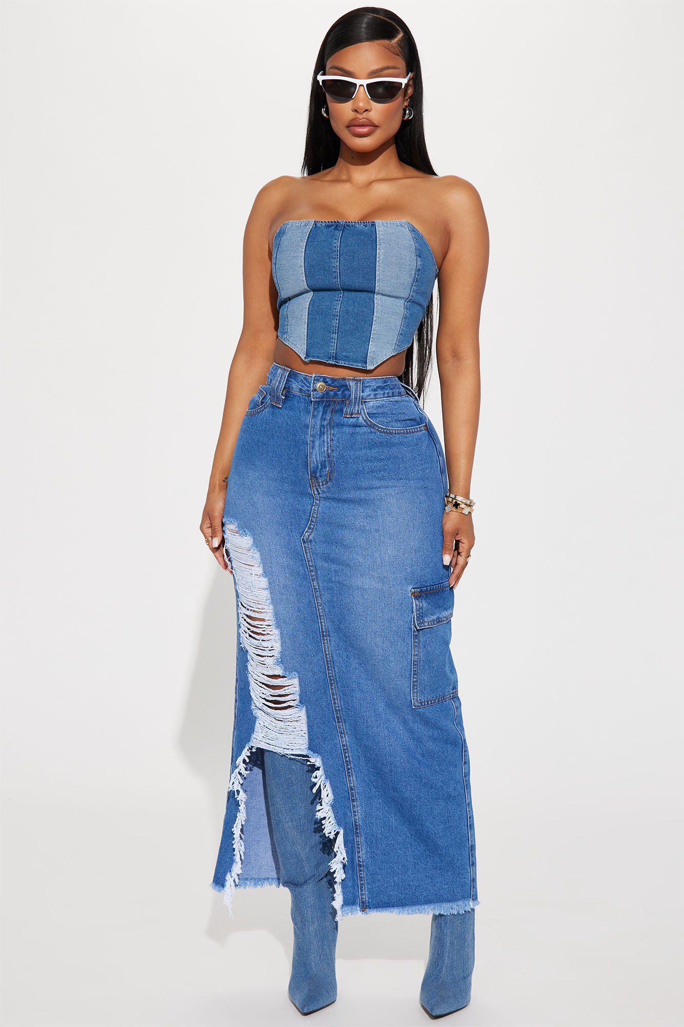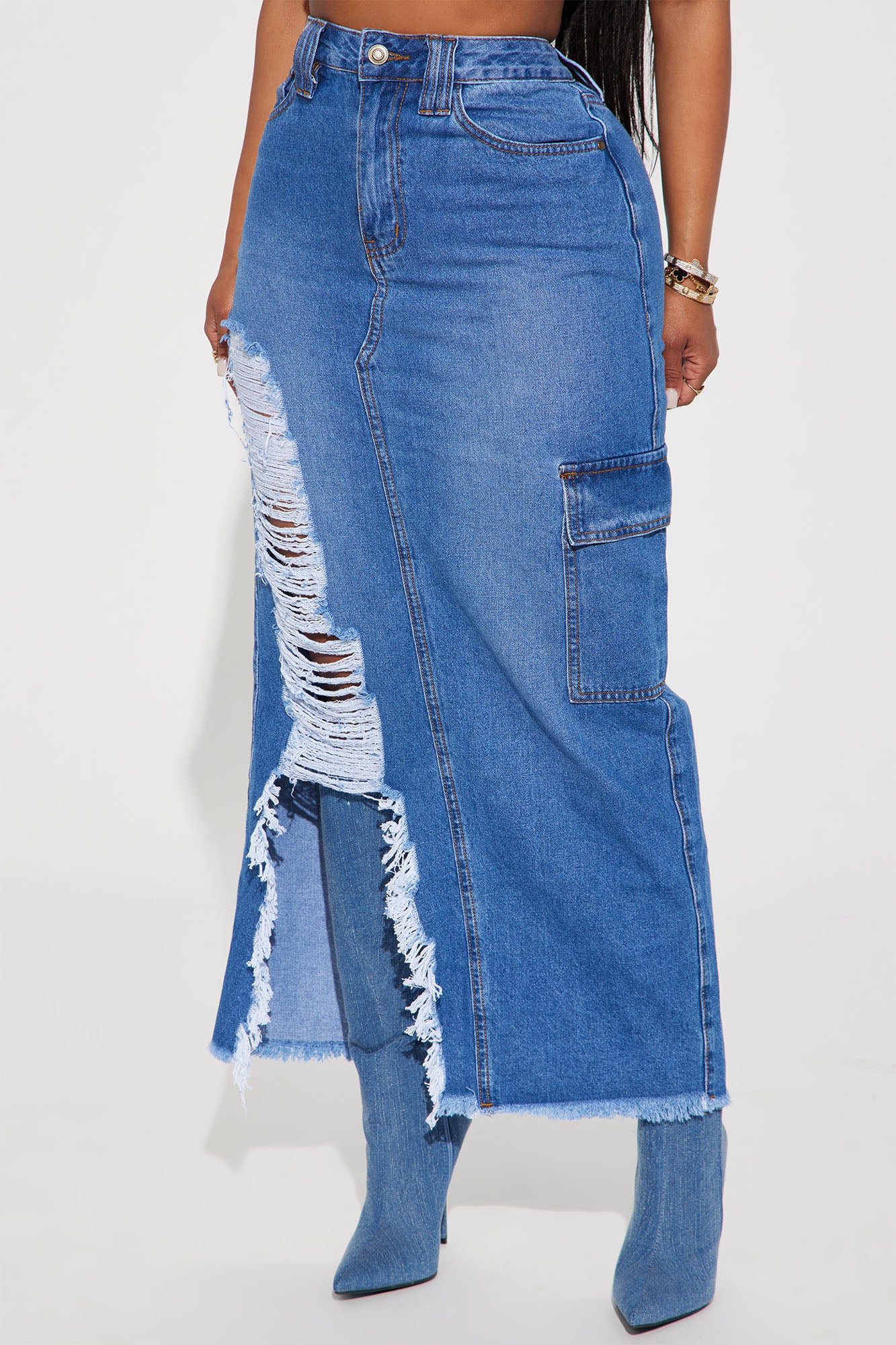 Kara Distressed Cargo Maxi Skirt - Medium Wash