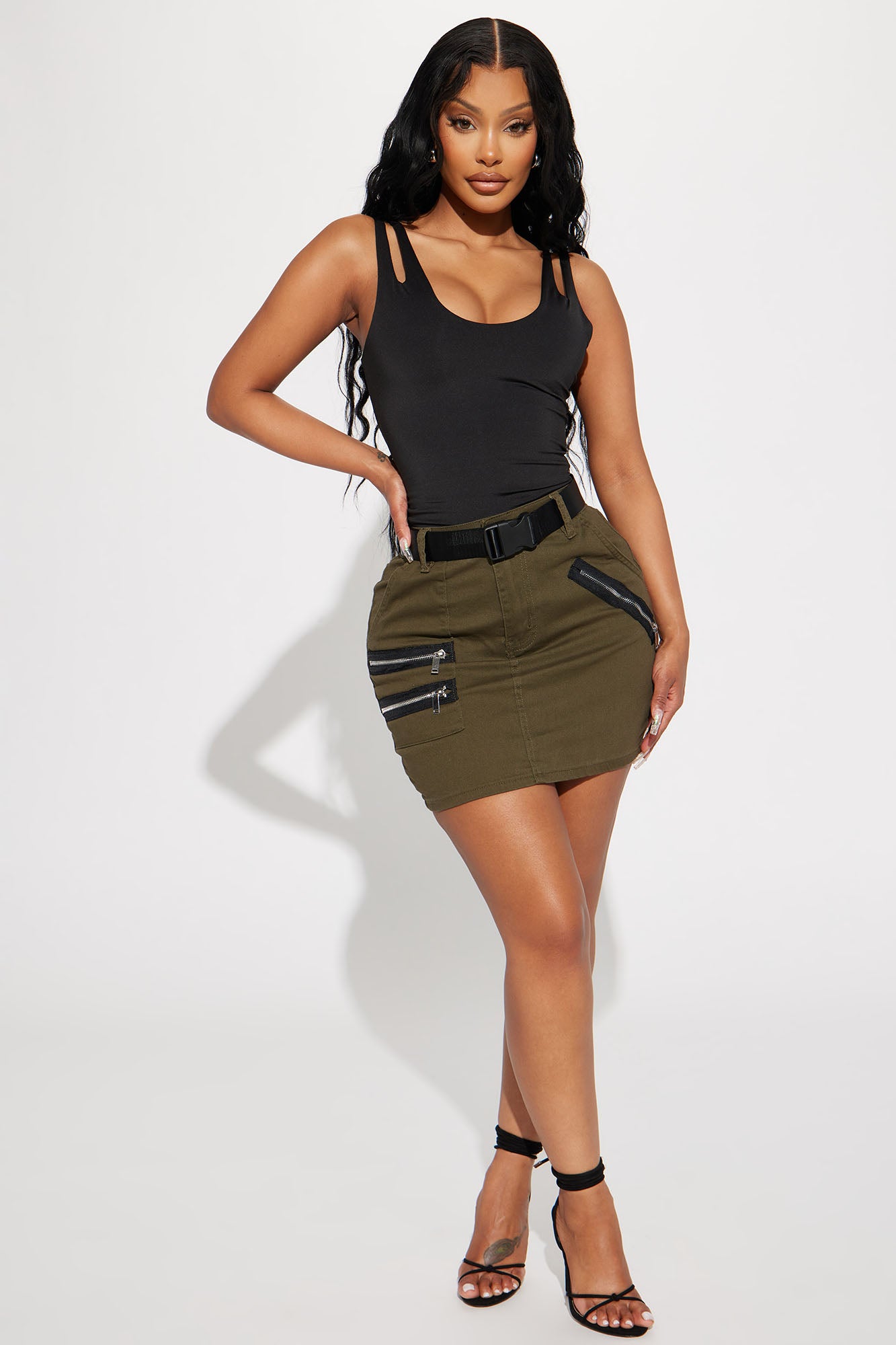 Sound Off Faux Leather Cargo Mini Skirt - Silver