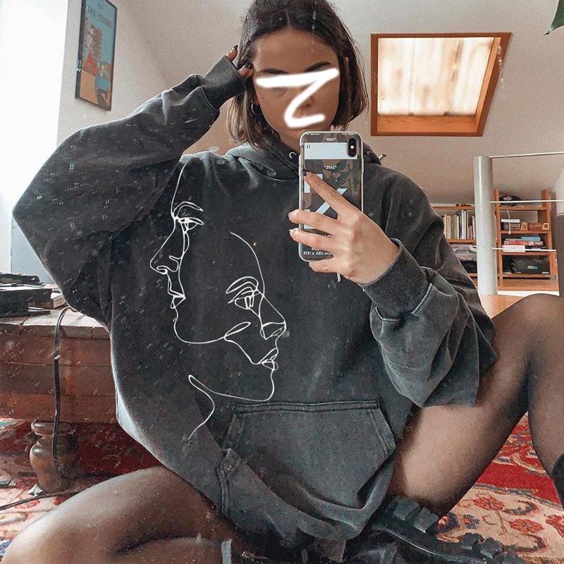 Vintage Basic Face Print Hoodie