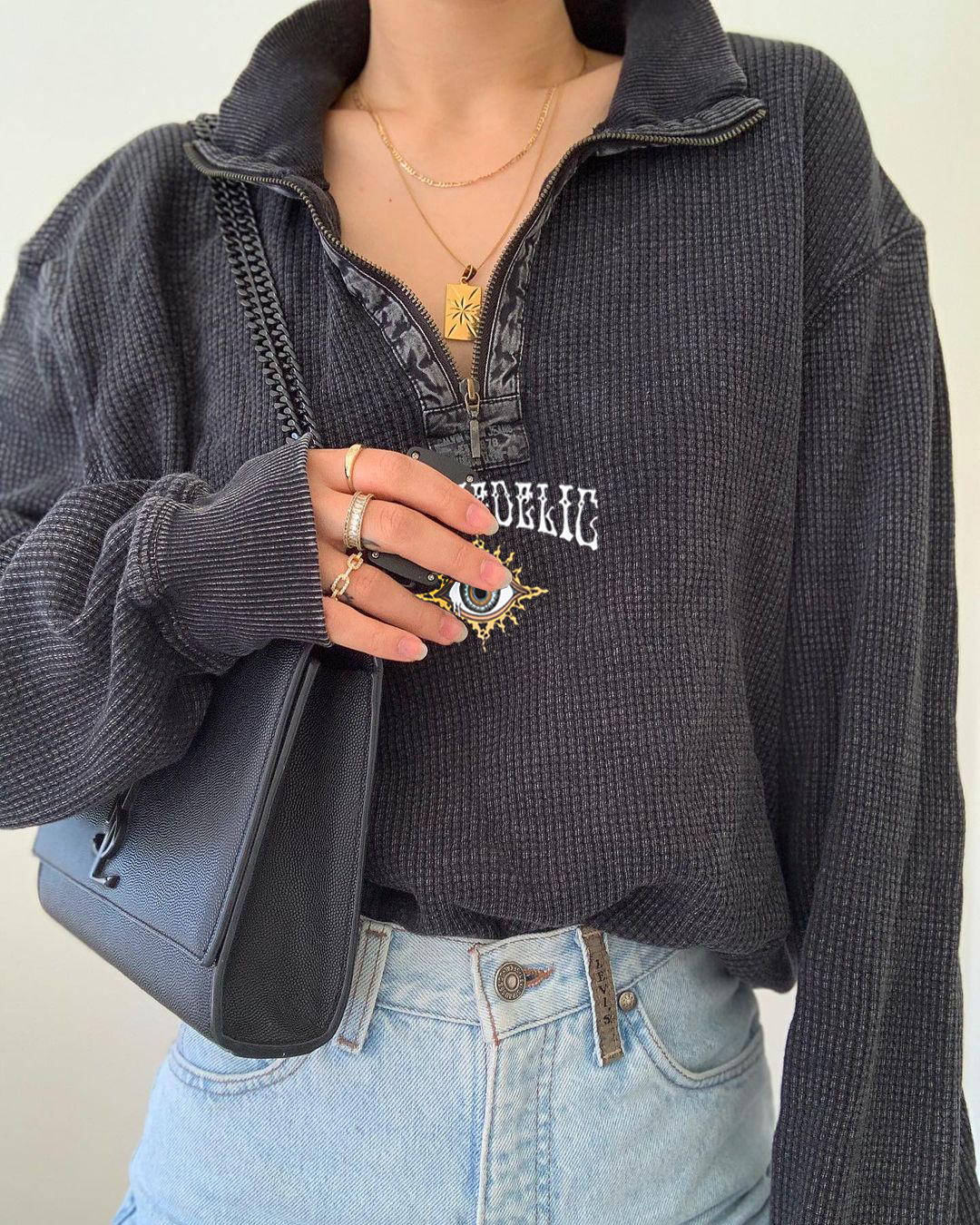 Celestial Eye Print Zip-up Sweatshirt