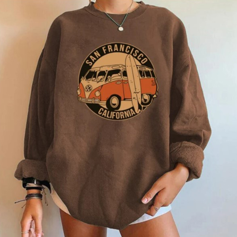 O-Neck Vintage Print Long Sleeve Sweatshirt