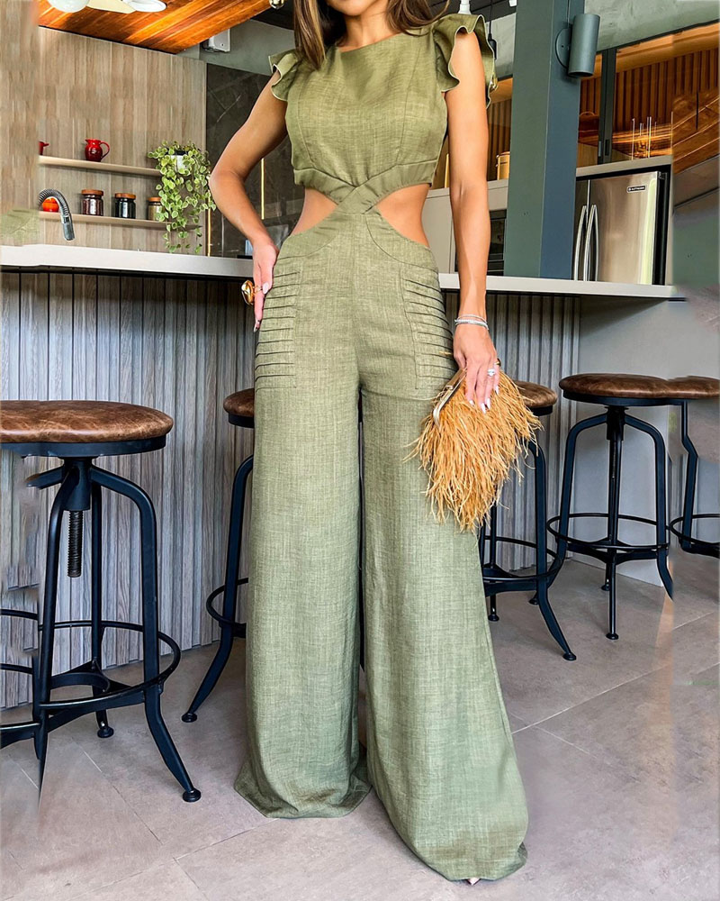 Sleeveless cutout solid color jumpsuit