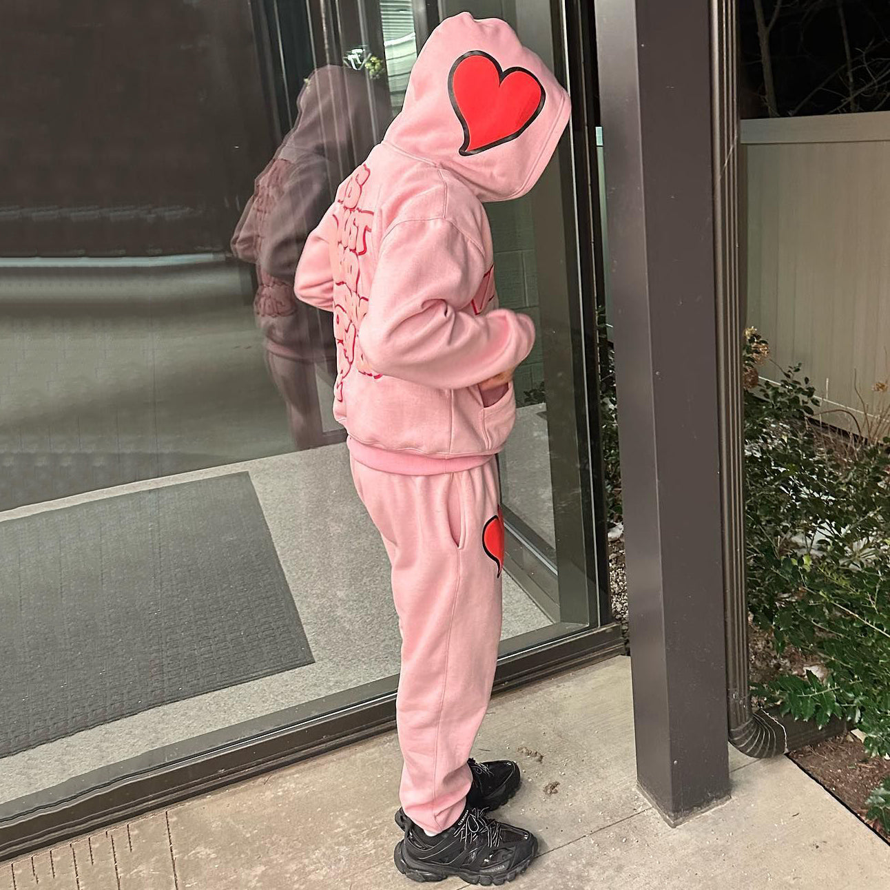 Letter Heart Print Hoodie Sweatpants Two Piece Set