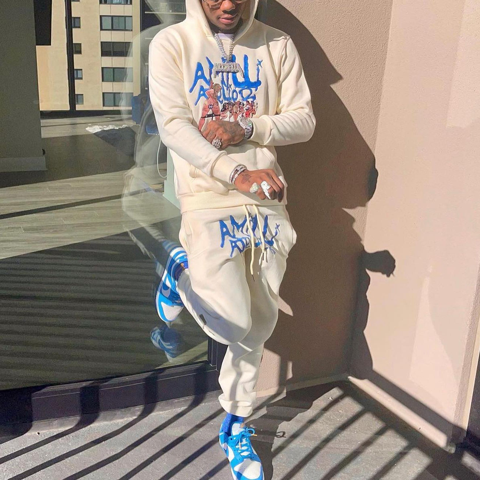 Therichestvision Print Hoodie Sweatpants Two Piece Set