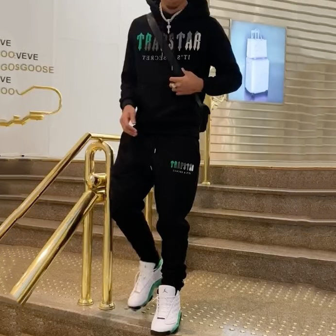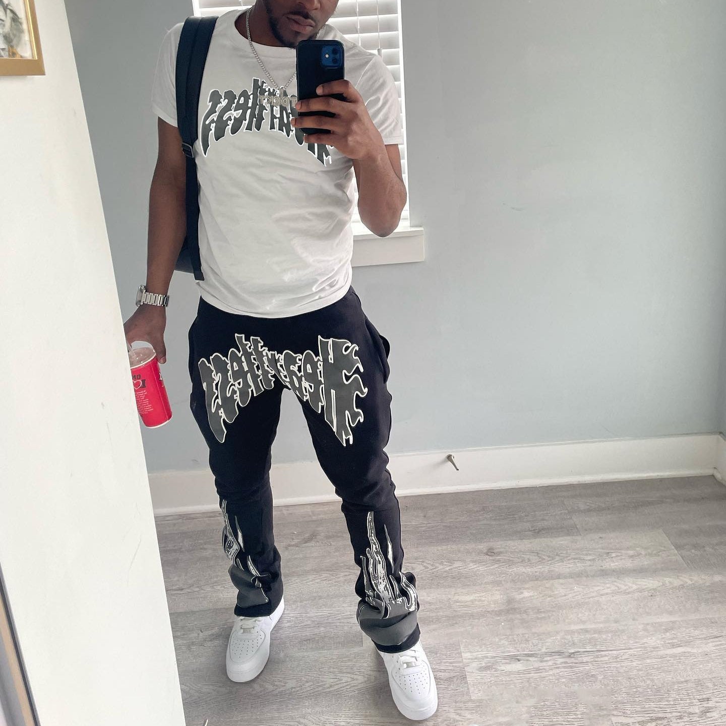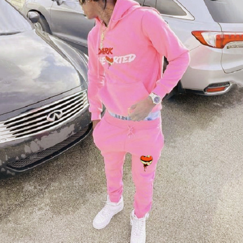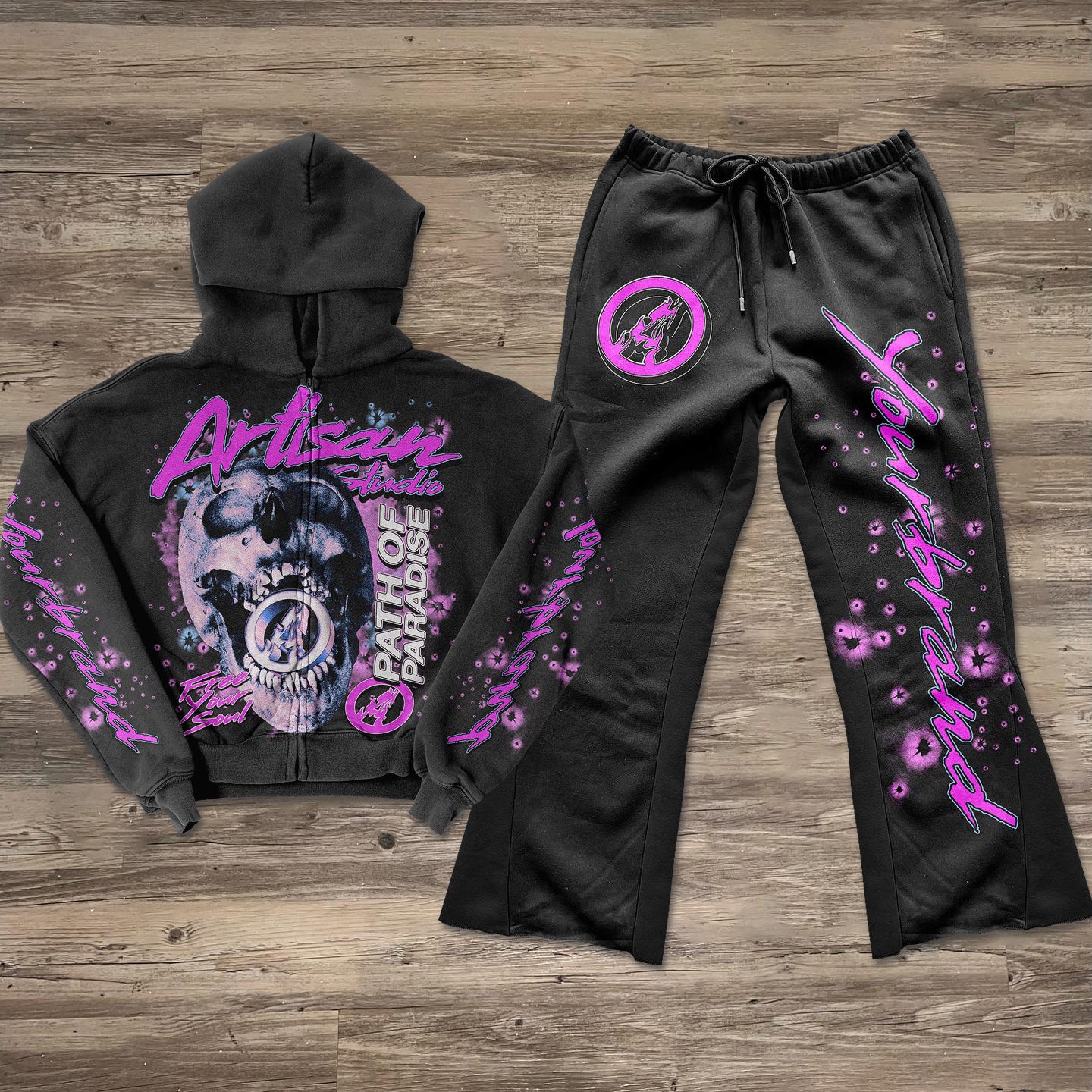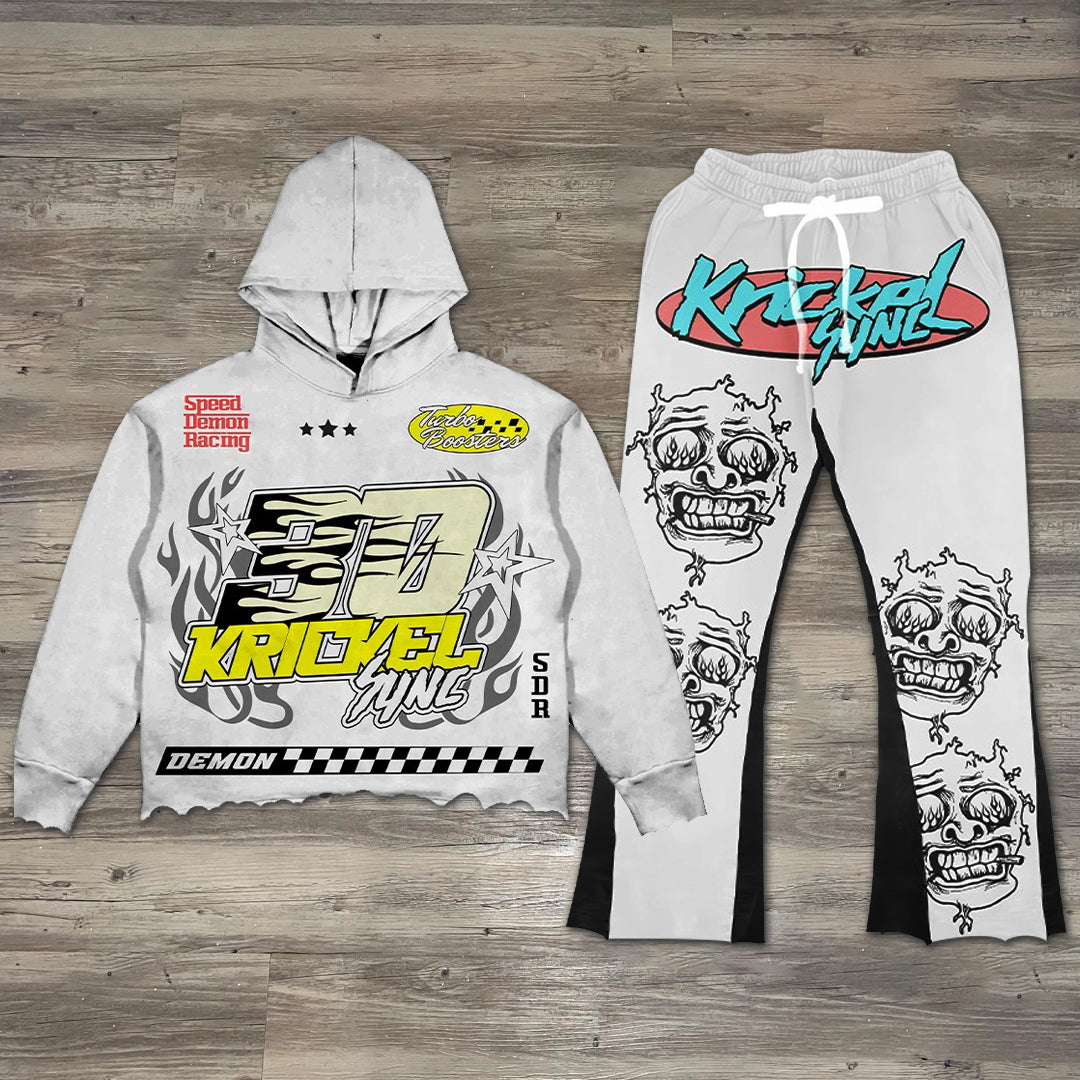 Cross skull casual street patchwork trousers and hoodie two-piece suit