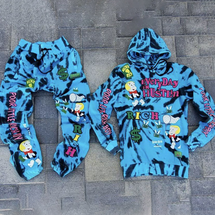 Fashion Tie Dye Cartoon Print Preppy Hoodie Set