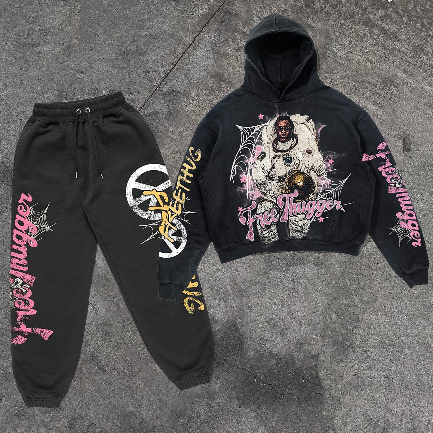 Astronaut Print Casual Street Hoodie Two-Piece Set