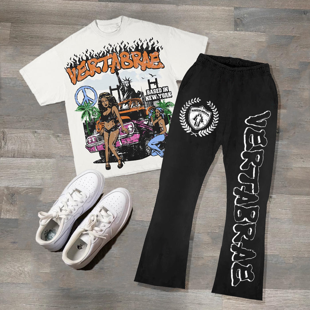 Casual Vintage Print Sports Street Two-Piece Suit