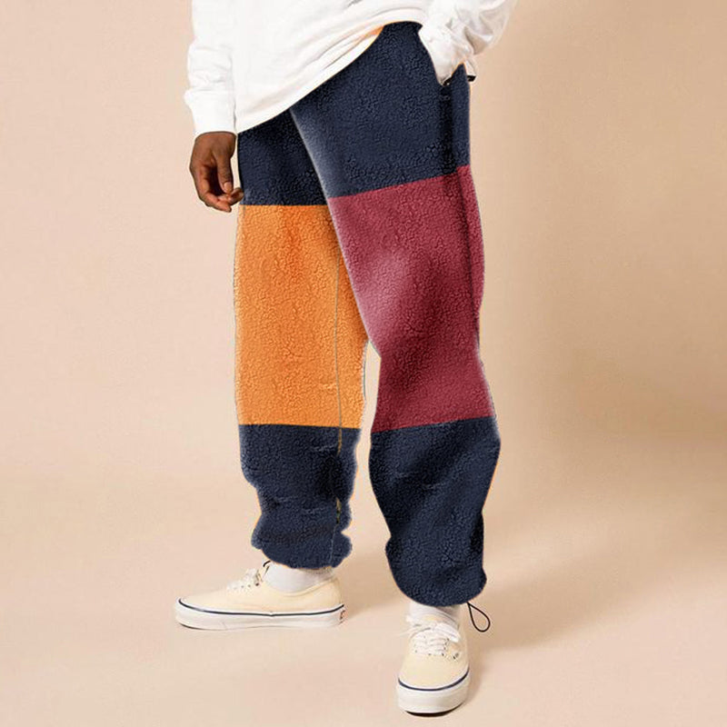 Autumn and winter fashion contrast color fleece men's casual trousers