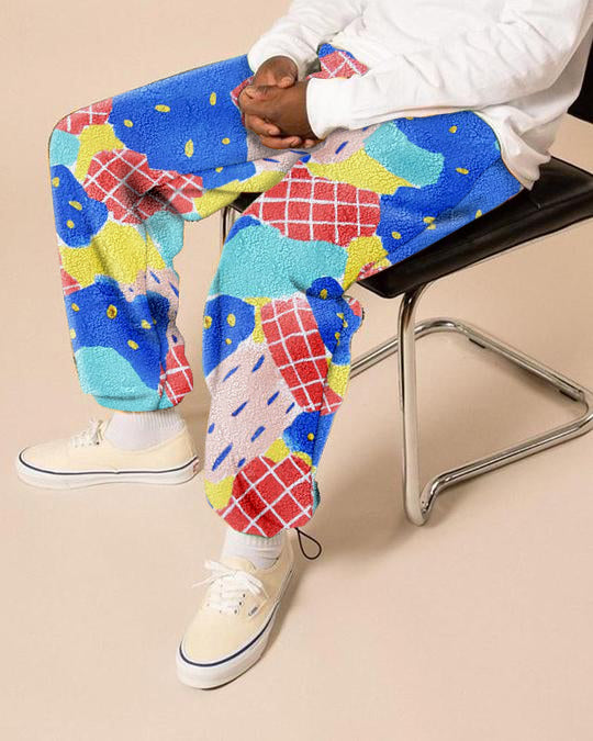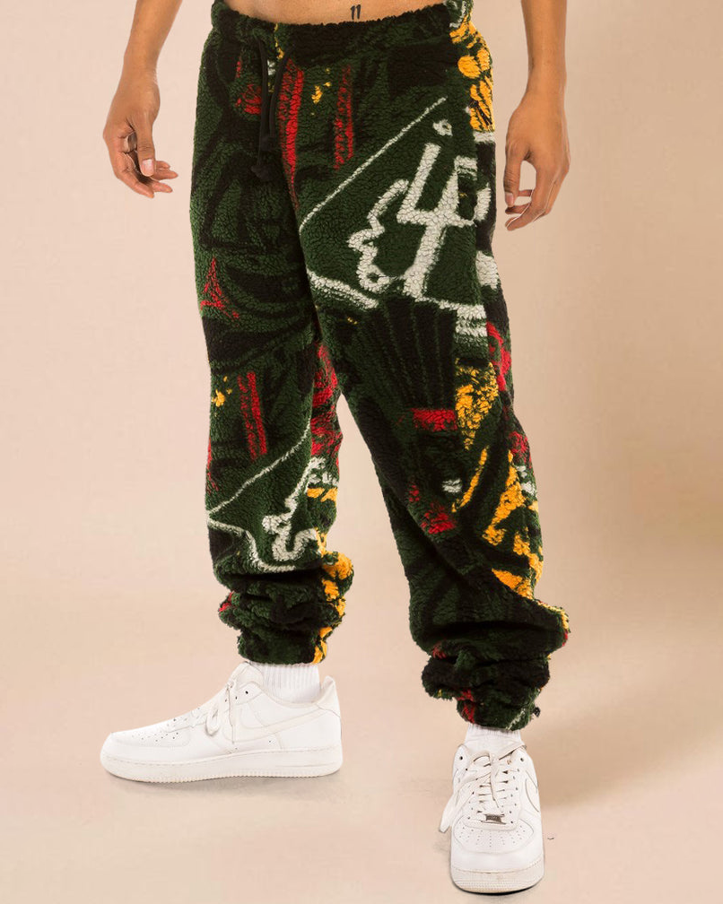 Contrast Graffiti Print Fleece Street Trousers