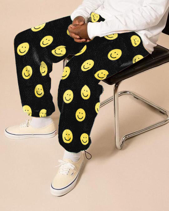 Casual smiley printed fleece trousers