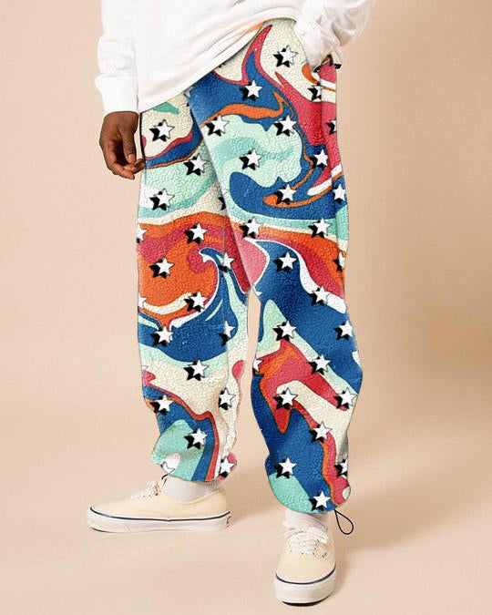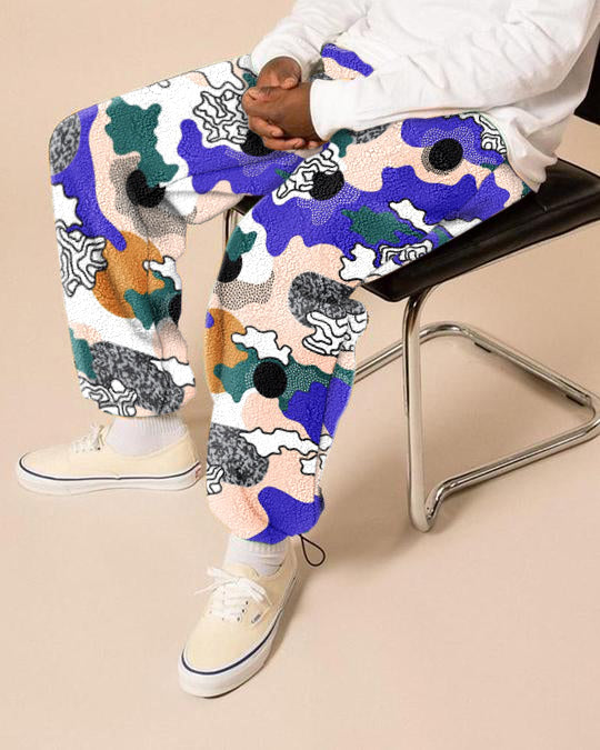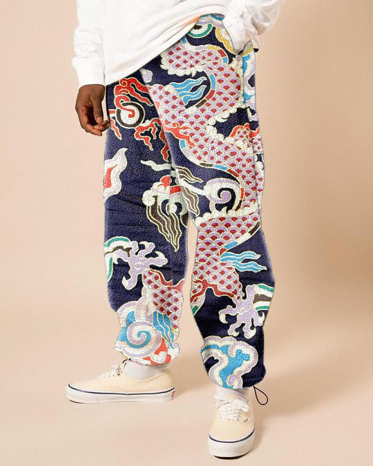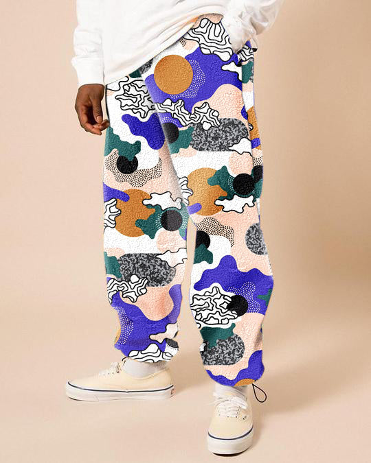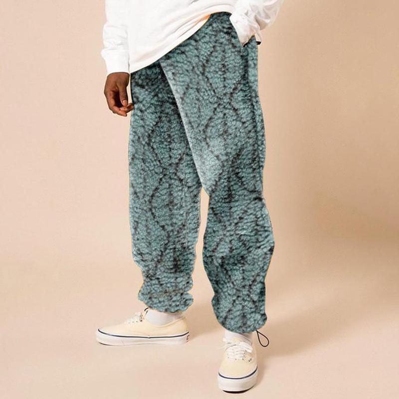 Retro trend street print polar fleece men's casual pants
