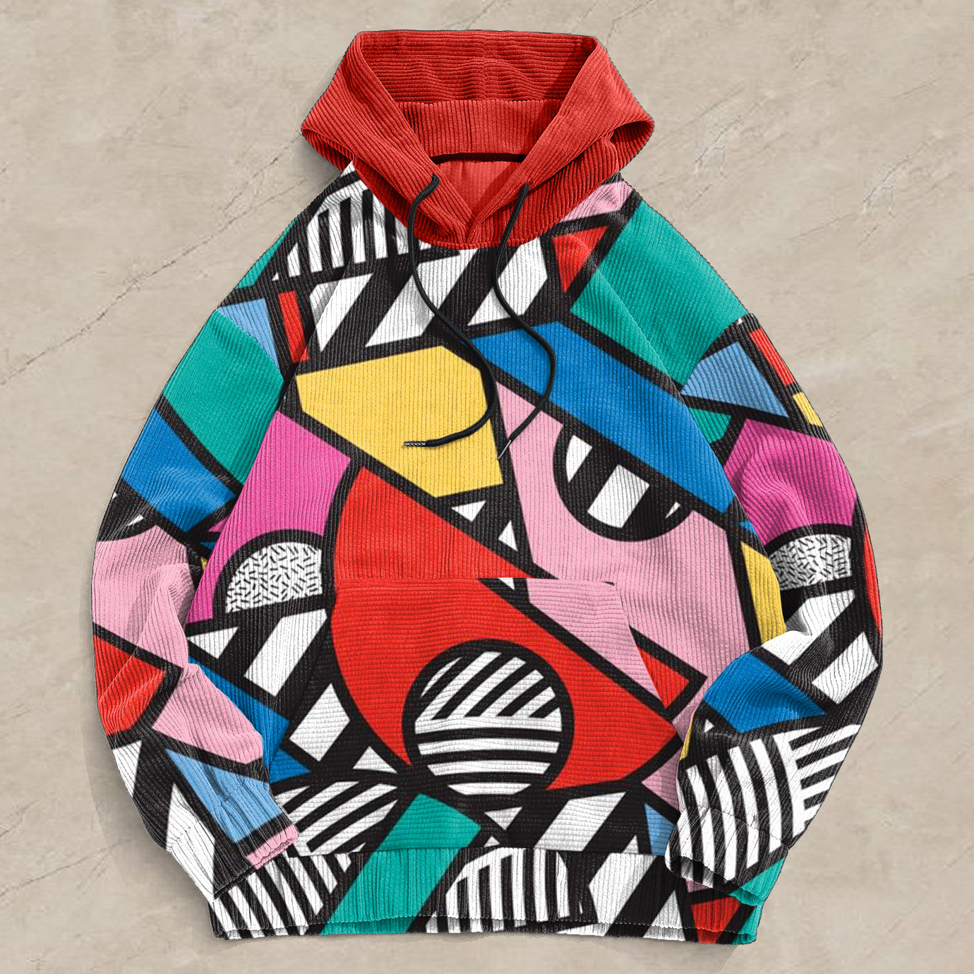 Corduroy Print Contrast Long Sleeve Street Hoodies