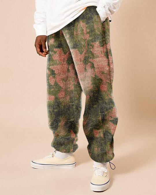 Gradient tie-dye printed polar fleece men's casual pants