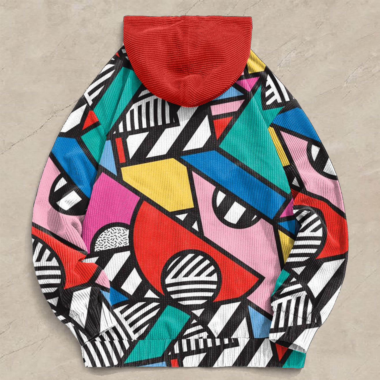 Vintage Contrast Graphic Corduroy Hoodies