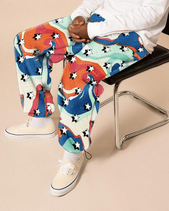 Polar fleece printed casual trousers