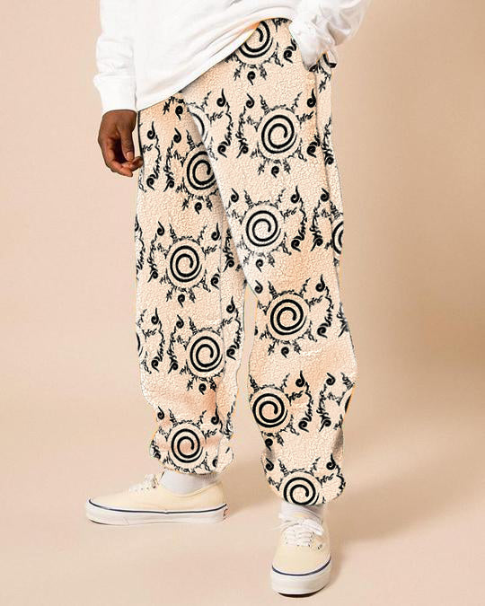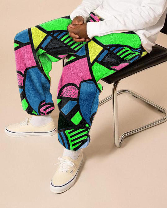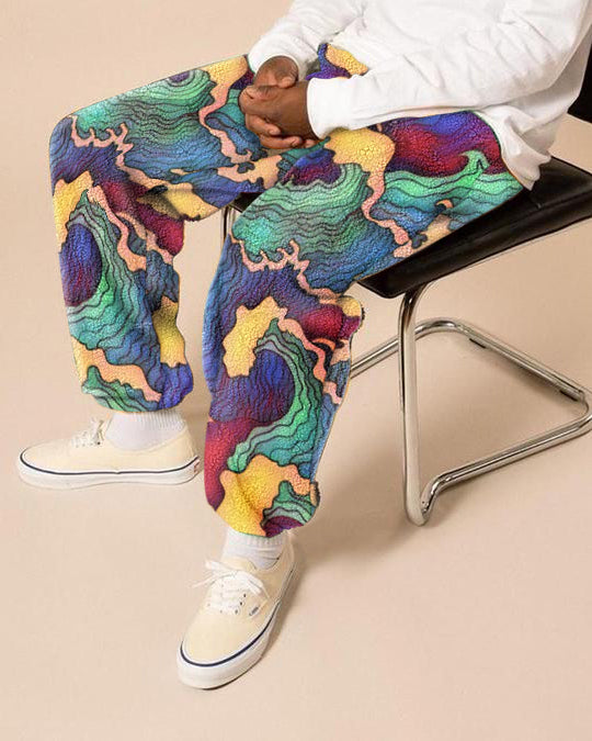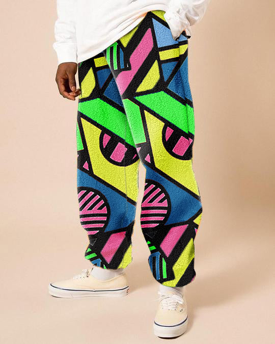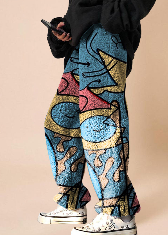 Trendy Color Contrast Cartoon Fleece Print Pants