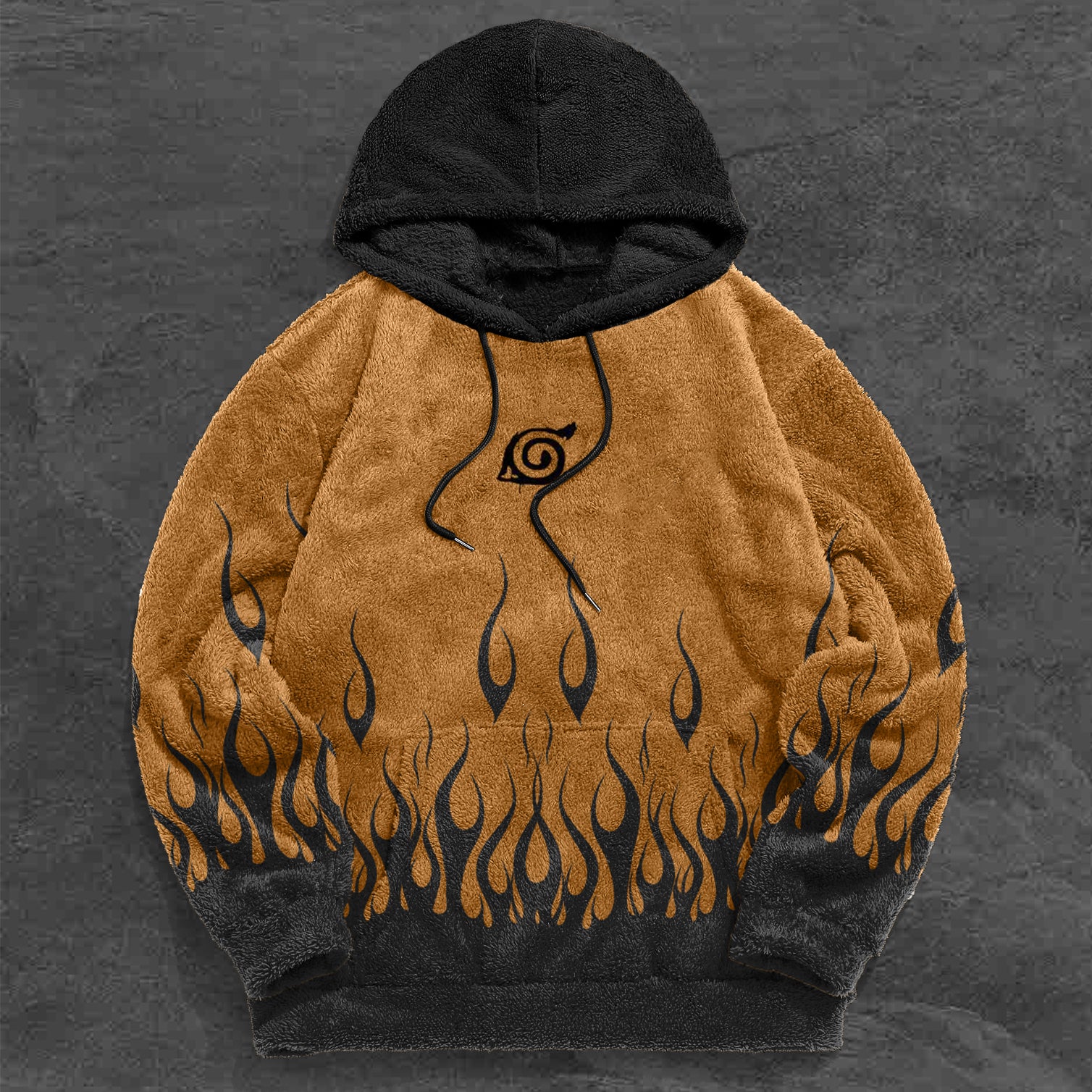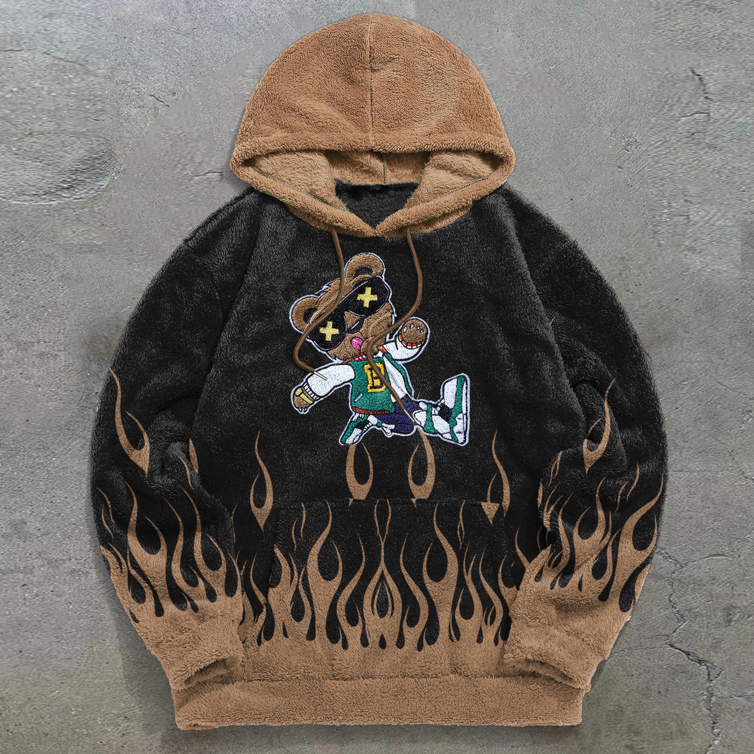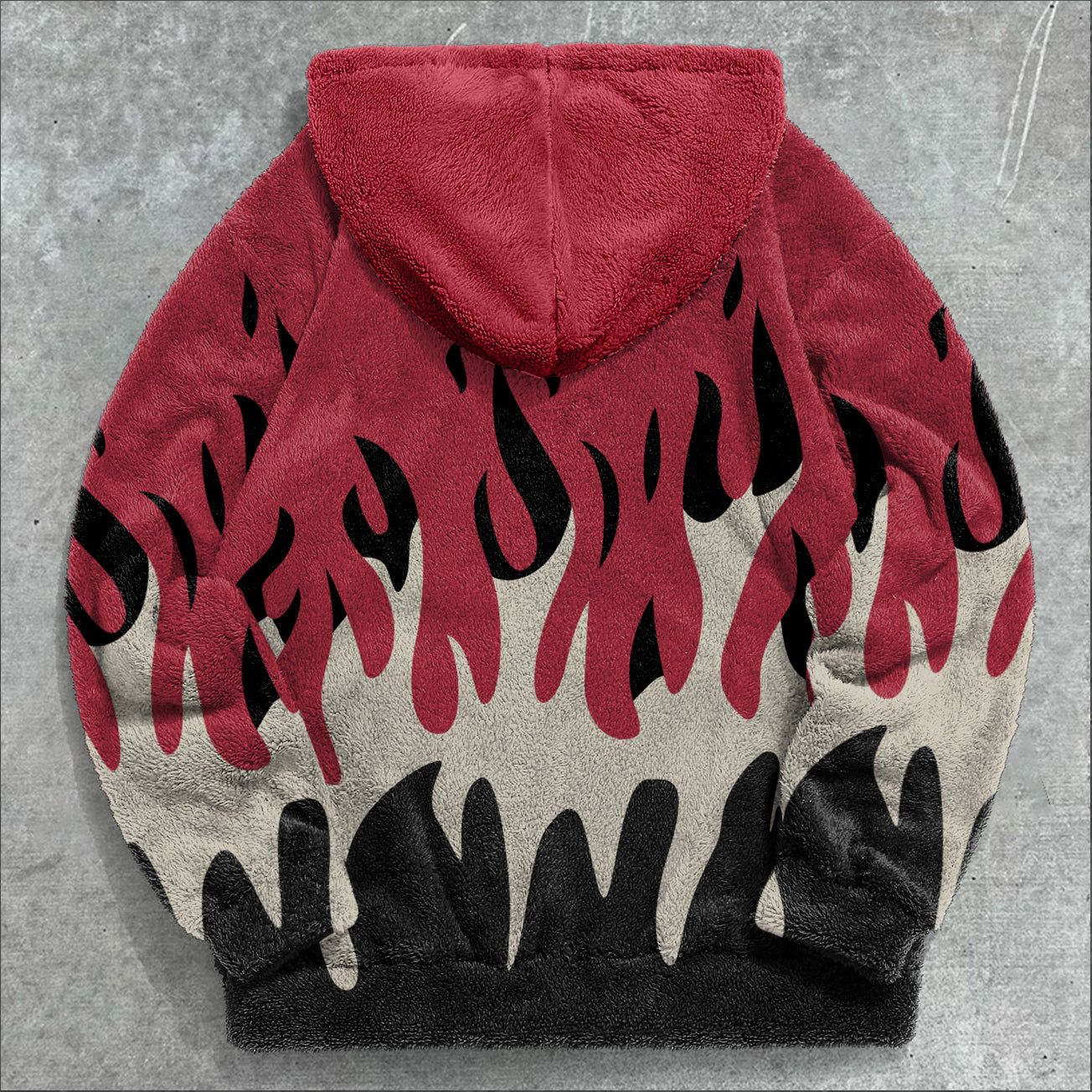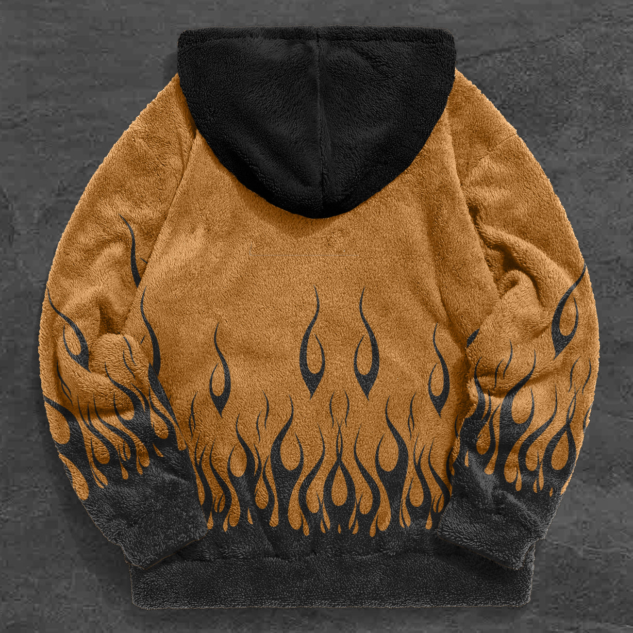 Flame Retro Trendy Print Contrasting Color Plush Hoodies