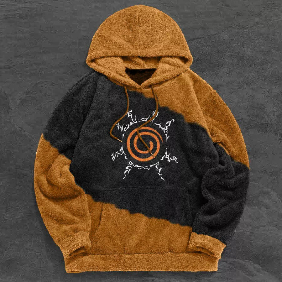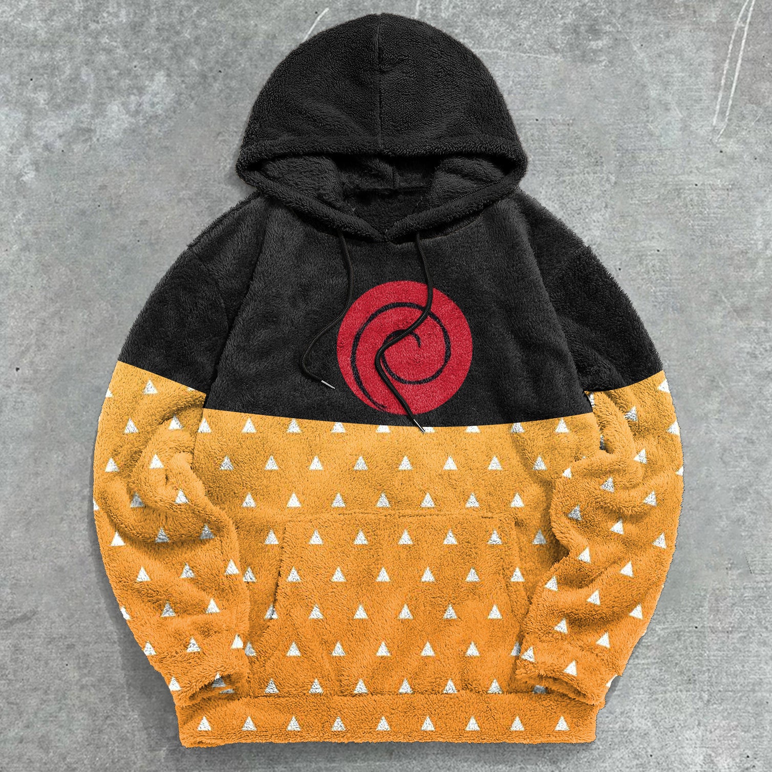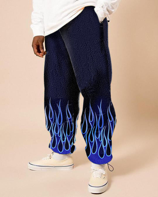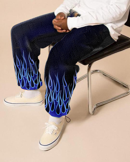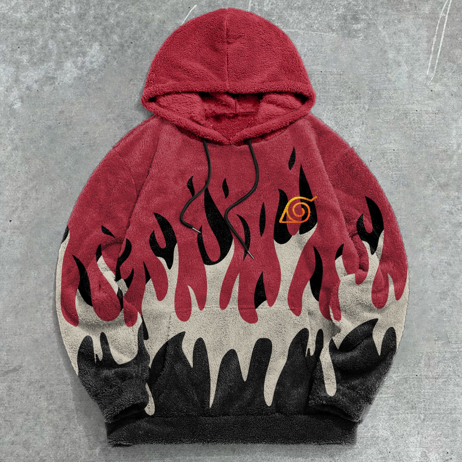 Flame Retro Trendy Print Contrasting Color Plush Hoodies